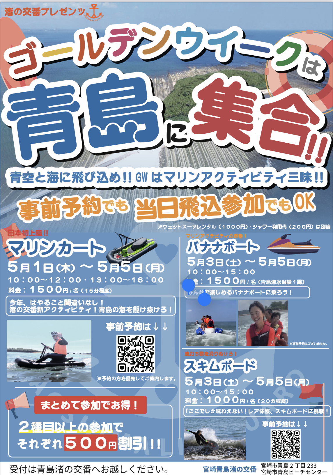 宮崎・青島海岸は、サーフィンやランニング、そしてのんびりお散歩まで楽しめる、南国リゾートの玄関口。渚の交番ビーチセンターでは、シャワー・ロッカー・体験プログラム完備で、誰でも気軽に安心して海を満喫できます。SUPやサーフィン体験も人気急上昇中!今すぐ青島で、自然とつながる特別なひとときをぜひ体感しませんか?