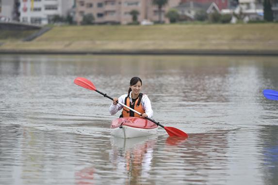 | インストラクター | 担当:池辺 美紀 大淀川の雄大な流れを感じるカヌーは、ライフジャケットを装着して活動します。 RAC(川の指導者)の資格者のもと、初心者でも安全に楽しめます。 |