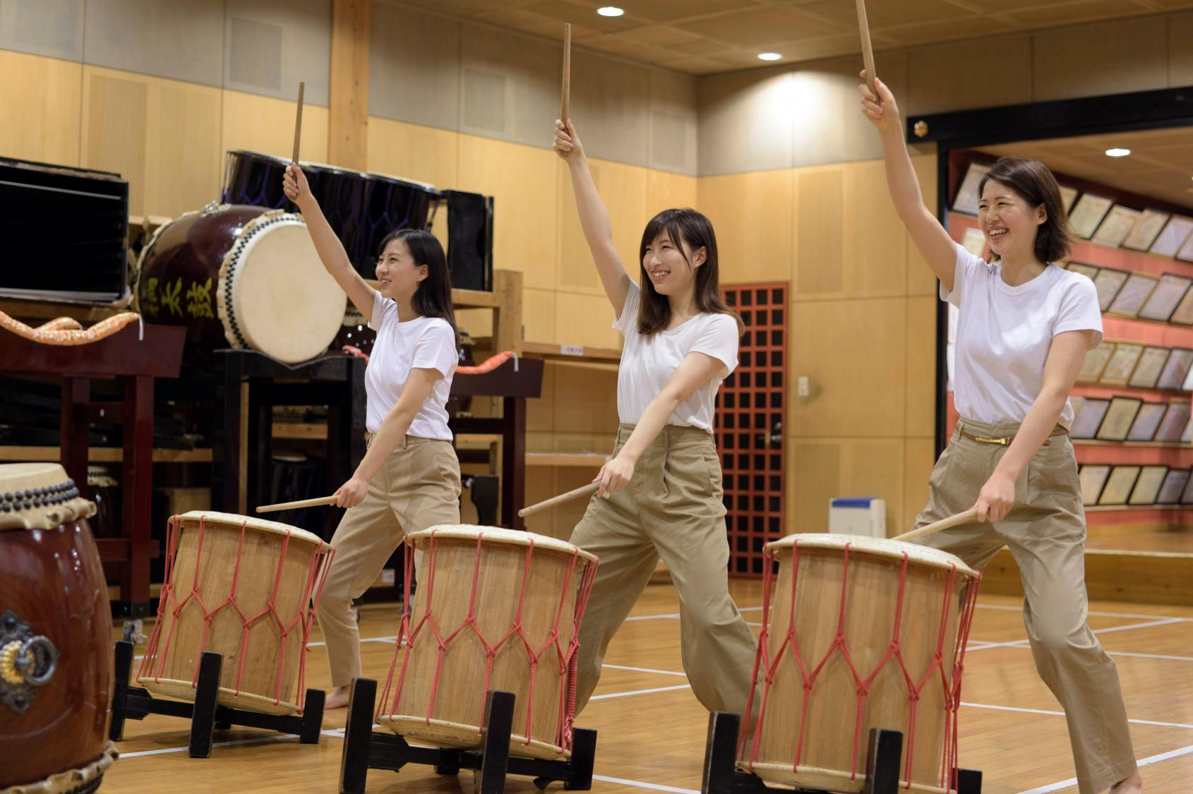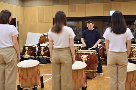 世界を股に掛けて公演する橘太鼓「響座」のメンバーから直接指導を受ける。心と体で表現する太鼓の響きは、自己の魂を呼び覚ましてくれる。