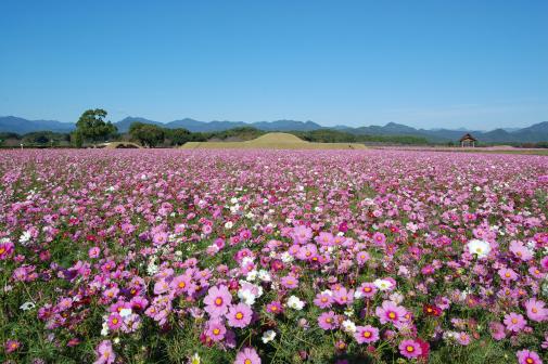 This is a park dotted with more than 300 burial mounds in a vast plateau. The burial mounds were built approximately 1,700 years ago. They vary in shape and size. You can also take a tour to see the inside of some of them. The park is home to a museum and a hands-on experience facility where you can learn about the ancient appearance and life of this area. The park is also famous as a cherry blossom spot. You can enjoy wonderful views because cherry blossoms and canola flowers bloom here in spring while cosmos flowers bloom here in the fall. We also recommend exploring the park with one of the free rental bicycles available.