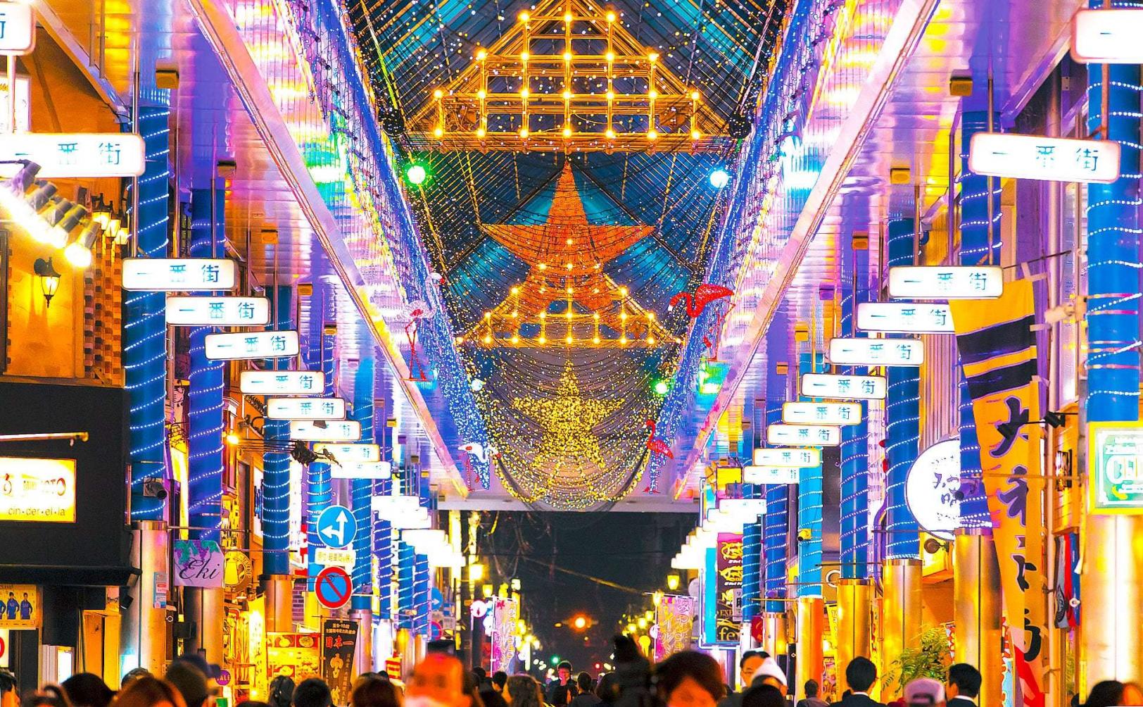 宮崎市中心市街地ではアーケードを中心に約50万球のイルミネーションが街を彩ります。