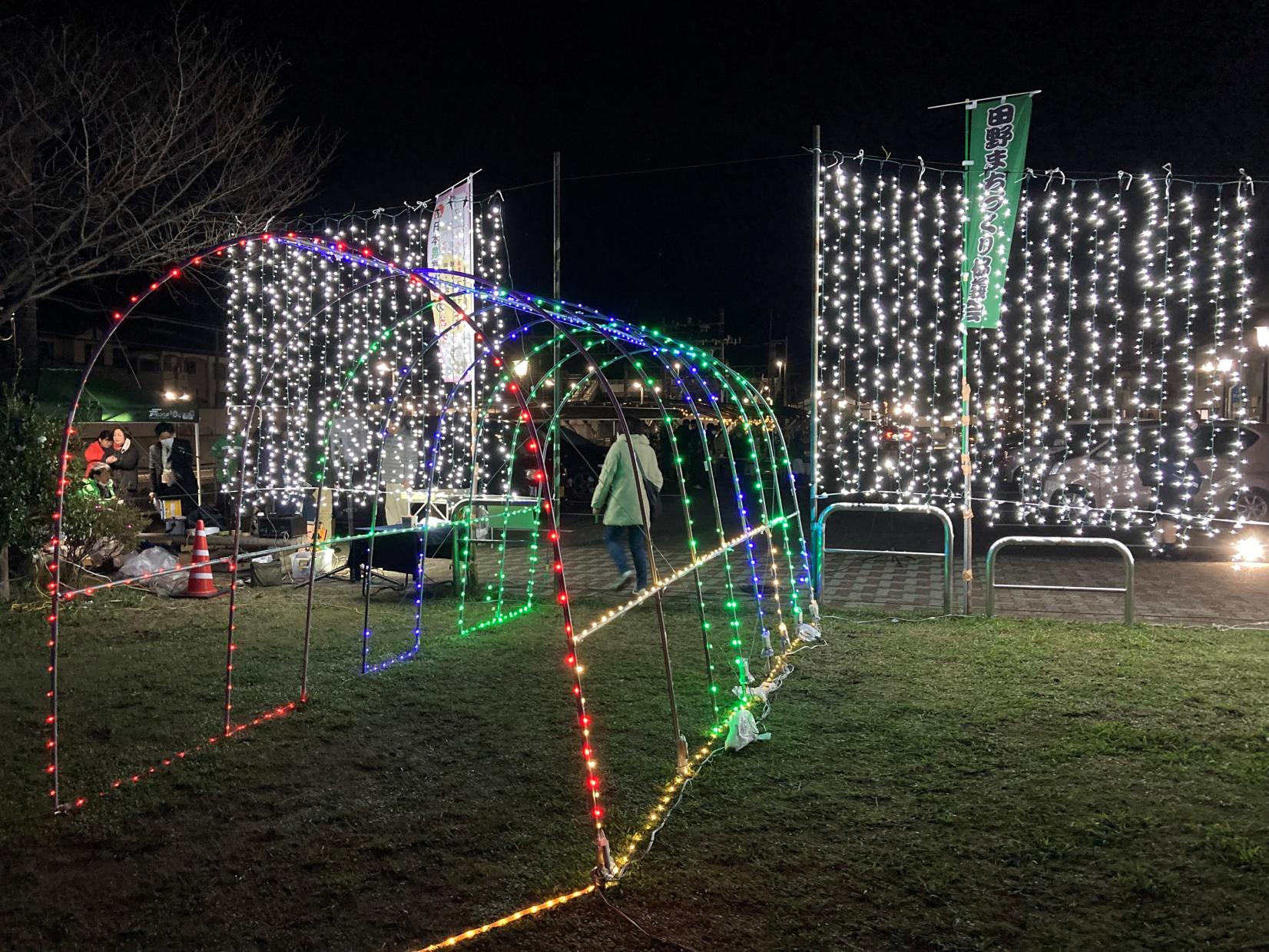 田野駅前ライトアップ!大根やぐらイルミネーション