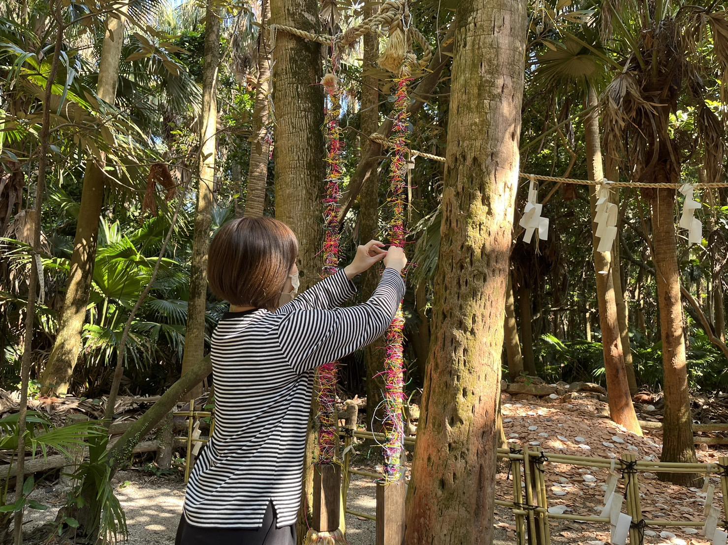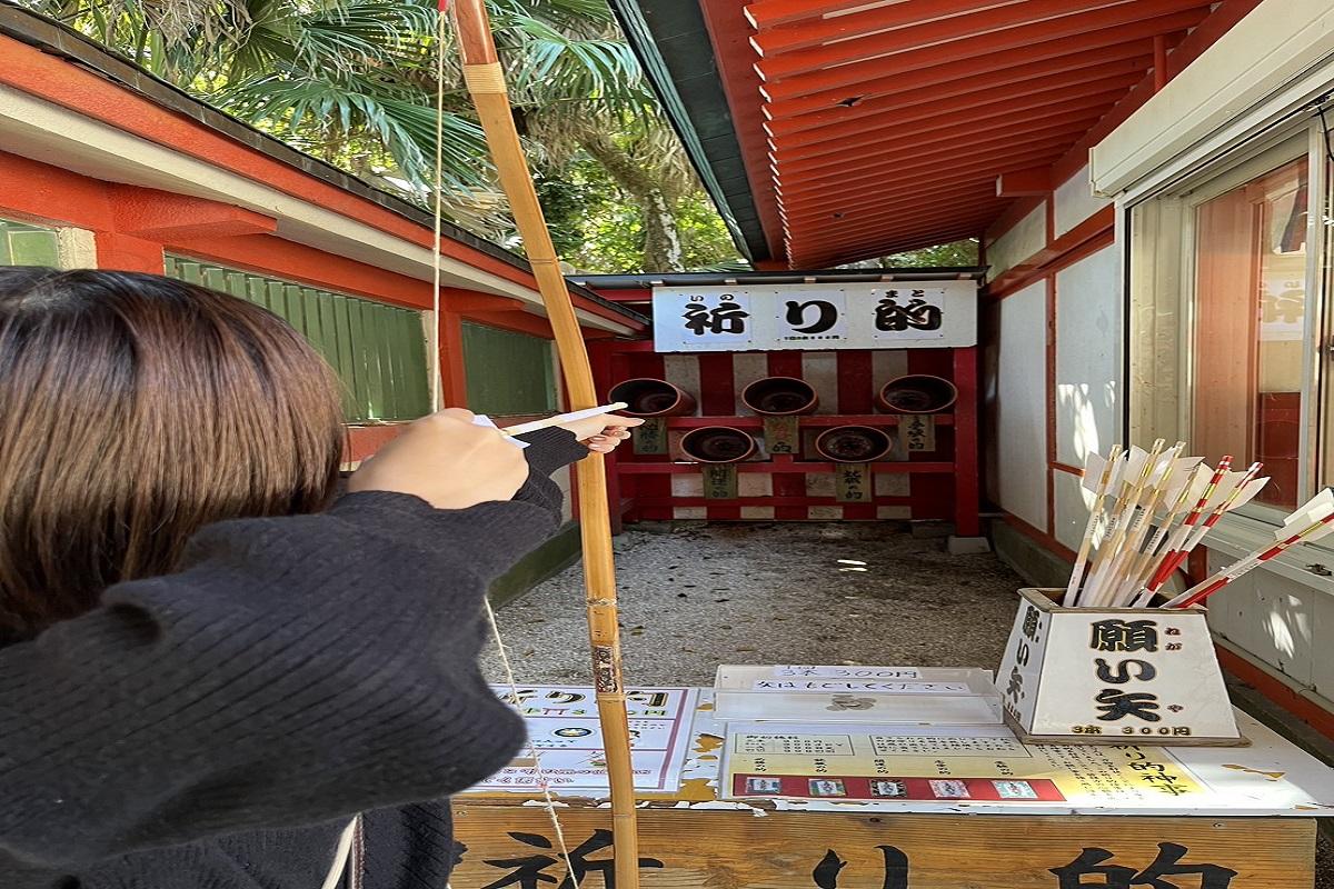 神社内には、自分の願いにあった色のこよりを結ぶ「結びこより」や、磐境に向かって天の平瓮を投げ磐境に入れば心願成就、割れれば開運厄除といわれる「天の平瓮投げ」や「祈り的」などで祈願することができます。