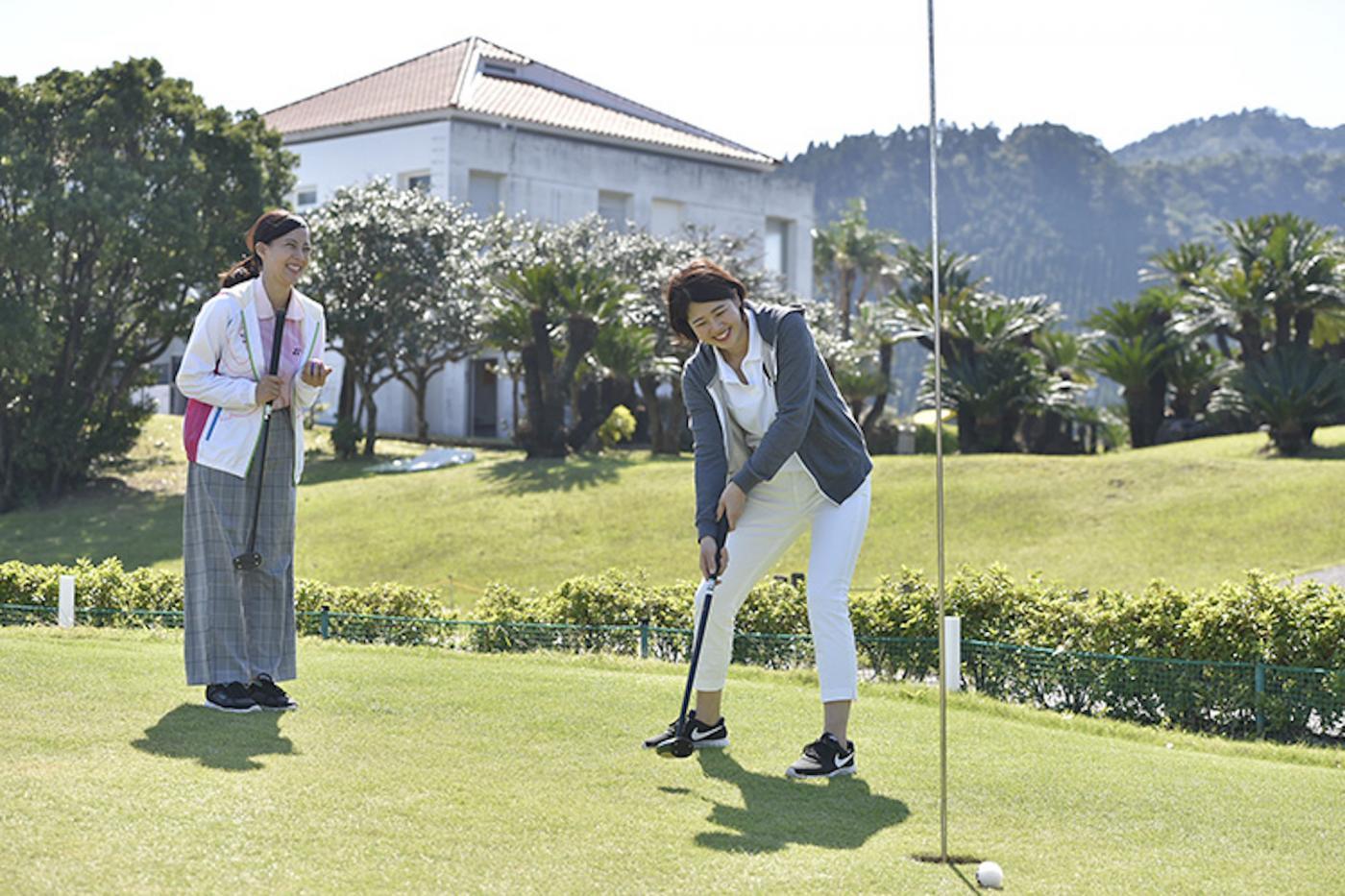 こどものくに内にある青島パークゴルフ場。パークゴルフは、芝におおわれたコースで1本のクラブとボールを使ってカップインするまでの打数を競い合います。親子や友達、そしてパークゴルフ場で出会った初めての間柄でも一緒に楽しめるコミュニケーションスポーツ!お子様からご年配の方まで無理なく楽しめるスポーツです。団体予約もできるので、大人数でのご旅行や修学旅行などでもおすすめ!必ず運動靴で向かうようにしましょう。