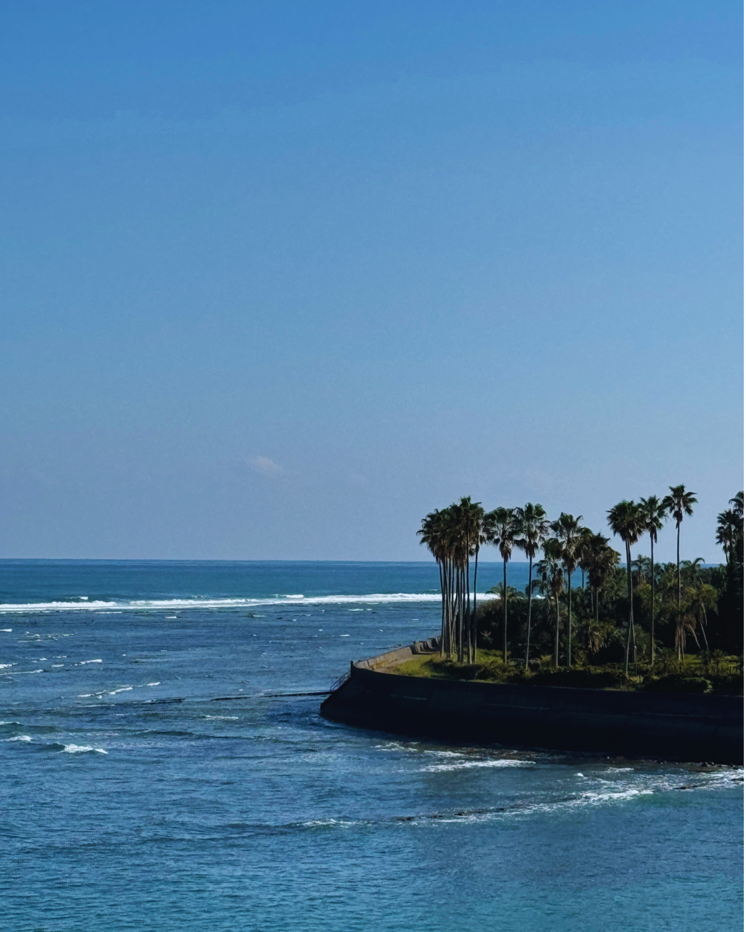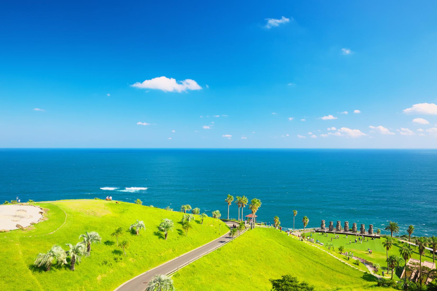 下からの眺めも、上からの眺めも圧巻の海とモアイ像『サンメッセ日南』