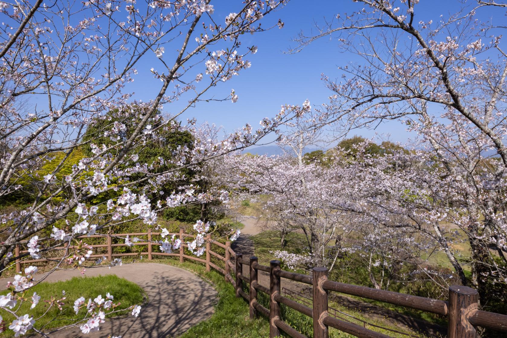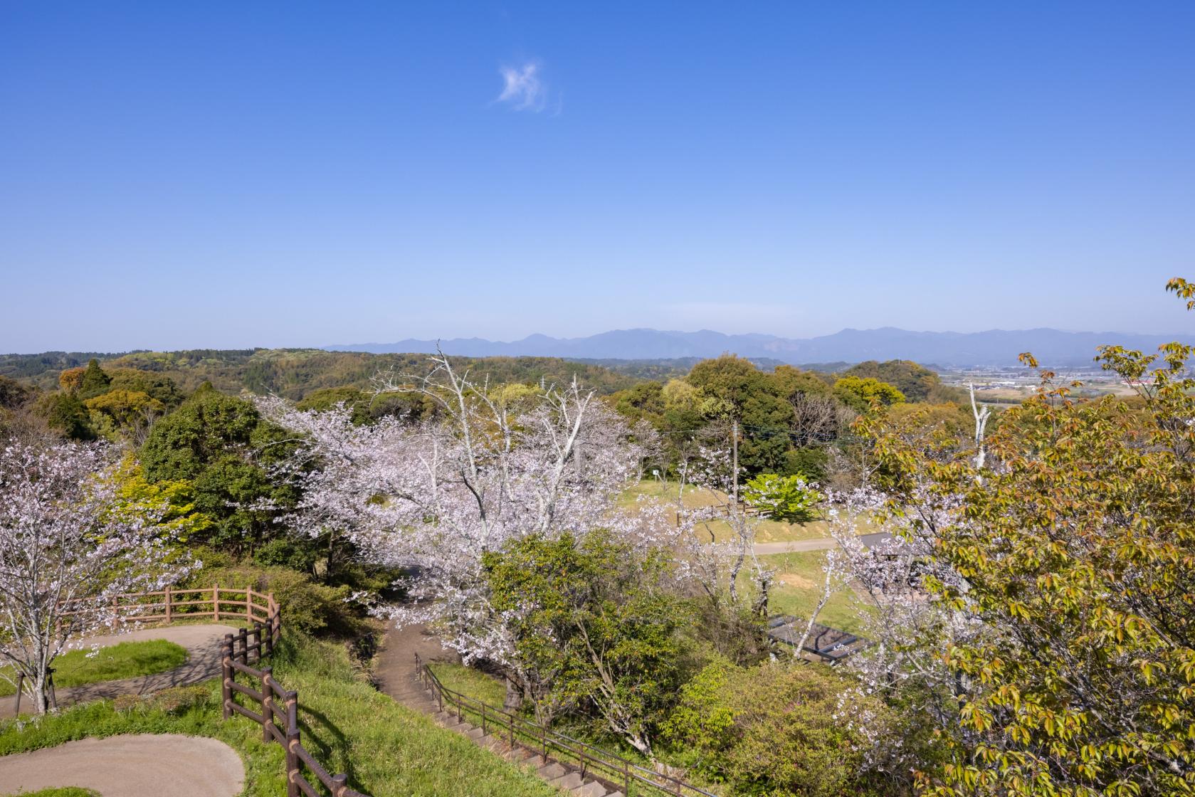 宮崎市内ではないですが、宮崎の桜の人気スポットといえば宮崎県西都市の西都原です。宮崎駅から車で約50分で、西都原の御陵墓前を中心に、桜2,000本、菜の花30万本が花を咲かせます。桜と菜の花のコントラストが美しく、春の訪れを存分に味わえる場所です。