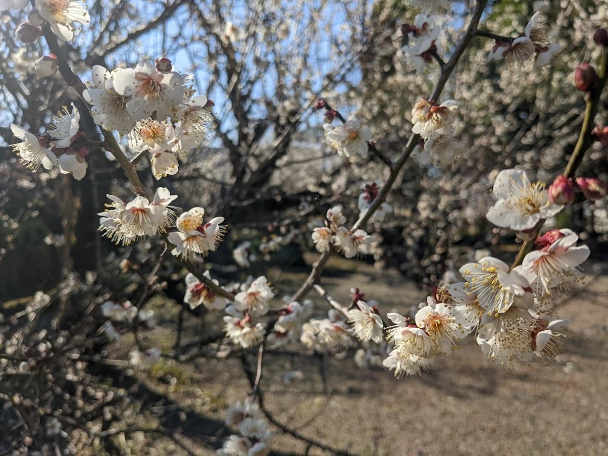 春の訪れを教えてくれる梅。新年になると約160本の紅白の梅が次々と咲きます。目の高さで花を観賞できるので、写真スポットにもおすすめです。