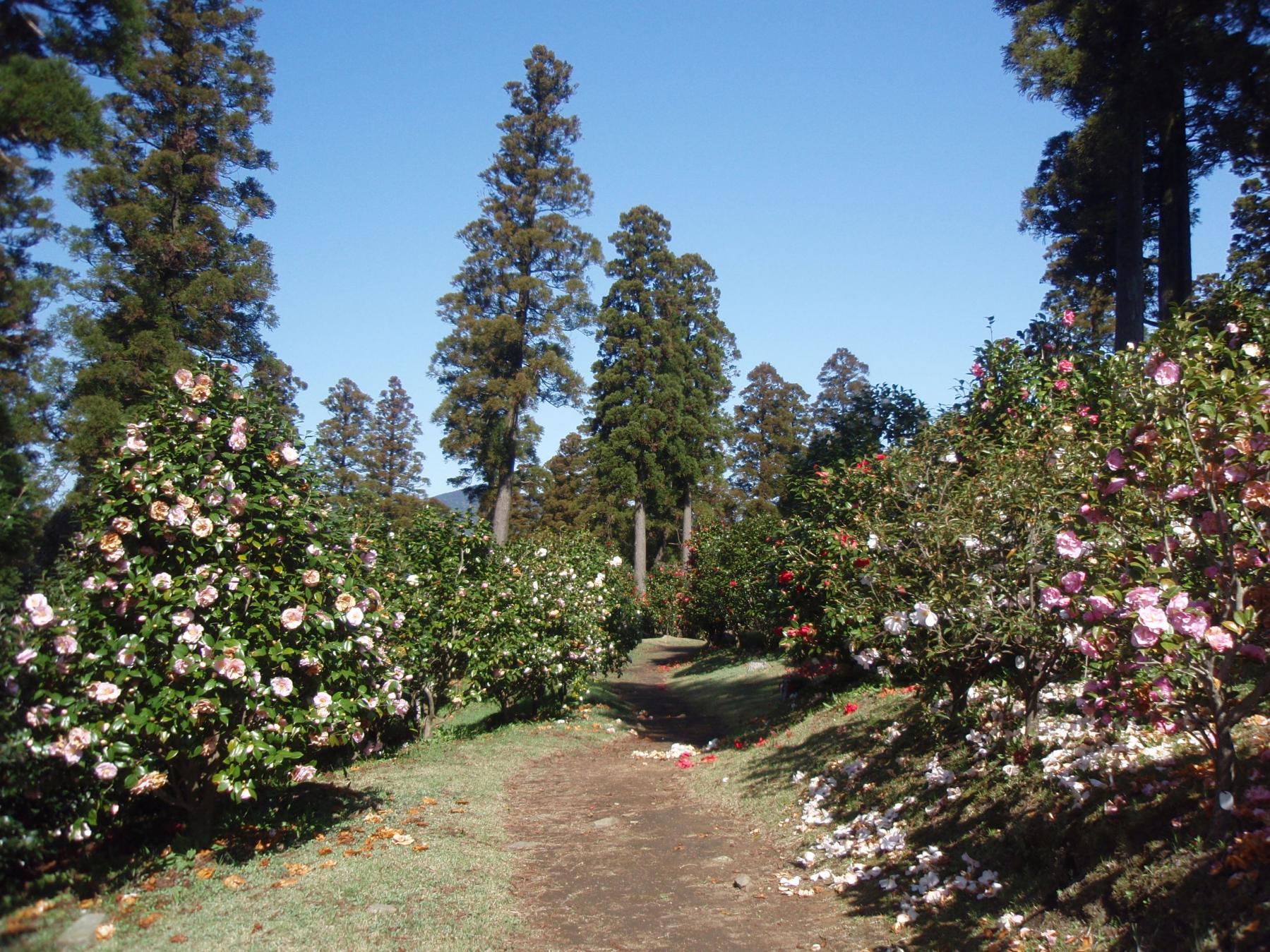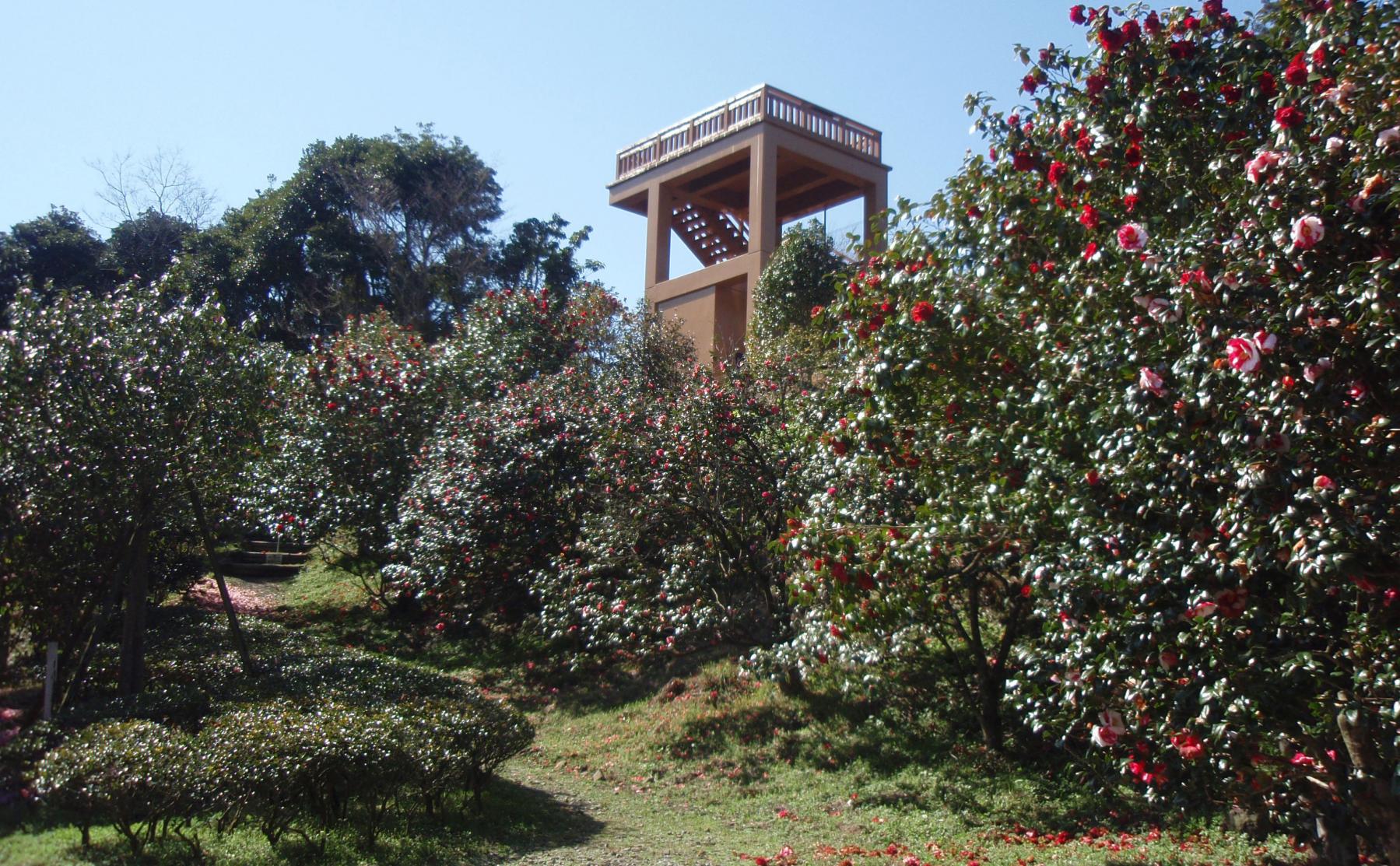宮崎市と日南市北郷町の境にあり、宮崎市の中心部から車で約40分、鏡洲にある椿山森林公園には、ヤブツバキを中心に約1000種、約48,000本が植えられています。宮崎市制60周年記念事業として整備が進められたのが椿山森林公園で、世界一のツバキ園を目指して整備されています。