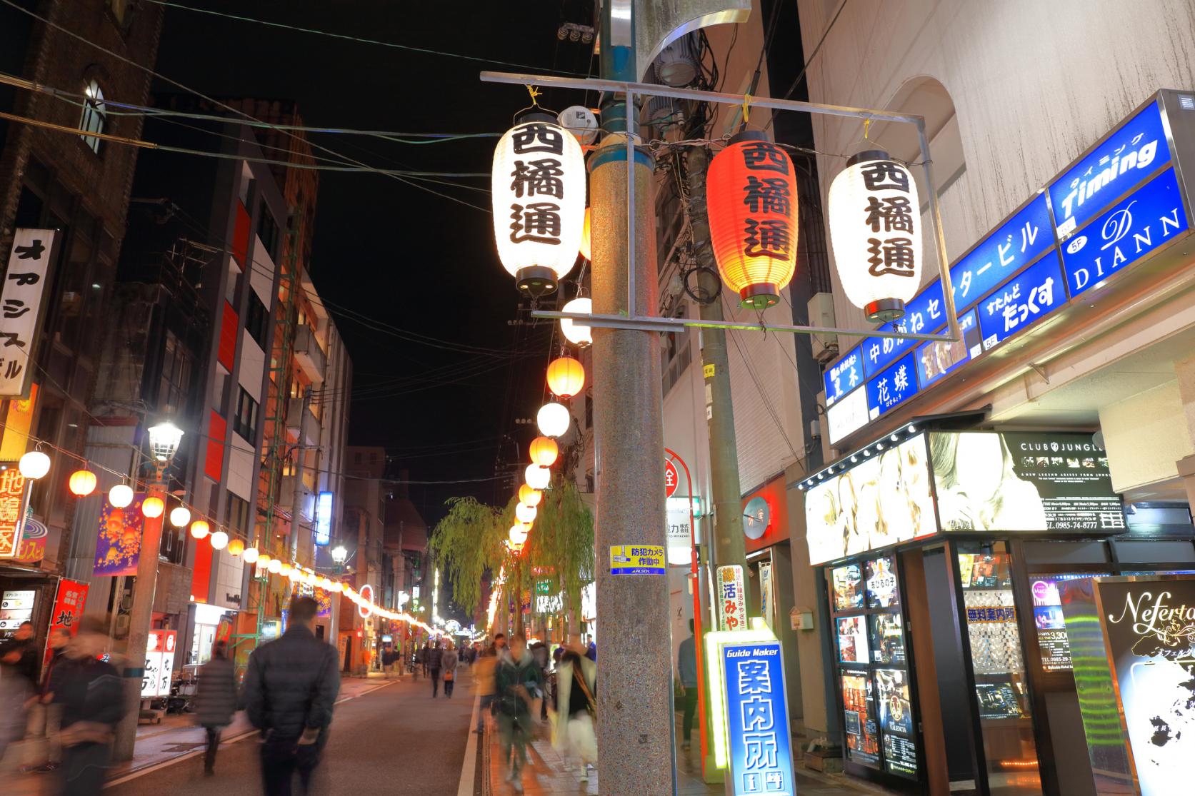 宮崎最大の歓楽街といえば通称「ニシタチ」。宮崎市の中心部、西橘通りをメインに1000軒以上の飲食店が立ち並びます。宮崎グルメや美味しいお酒、ひとりで気軽に入れるお店も多く、ハシゴ酒もおすすめです。