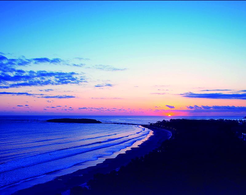 美しい日南海岸と、その向こうの水平線から真っ赤な朝日がゆっくり昇ってくる姿は息をのむ美しさです。