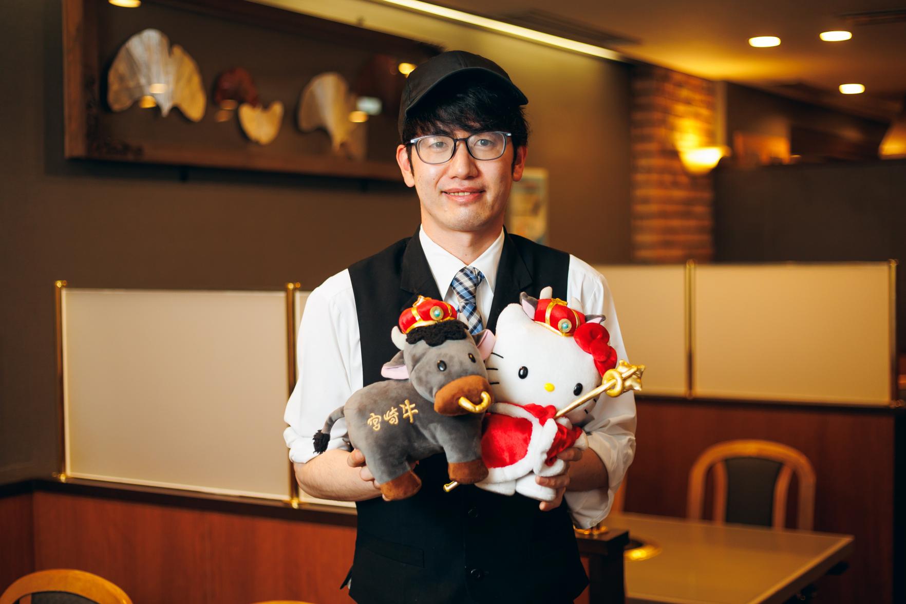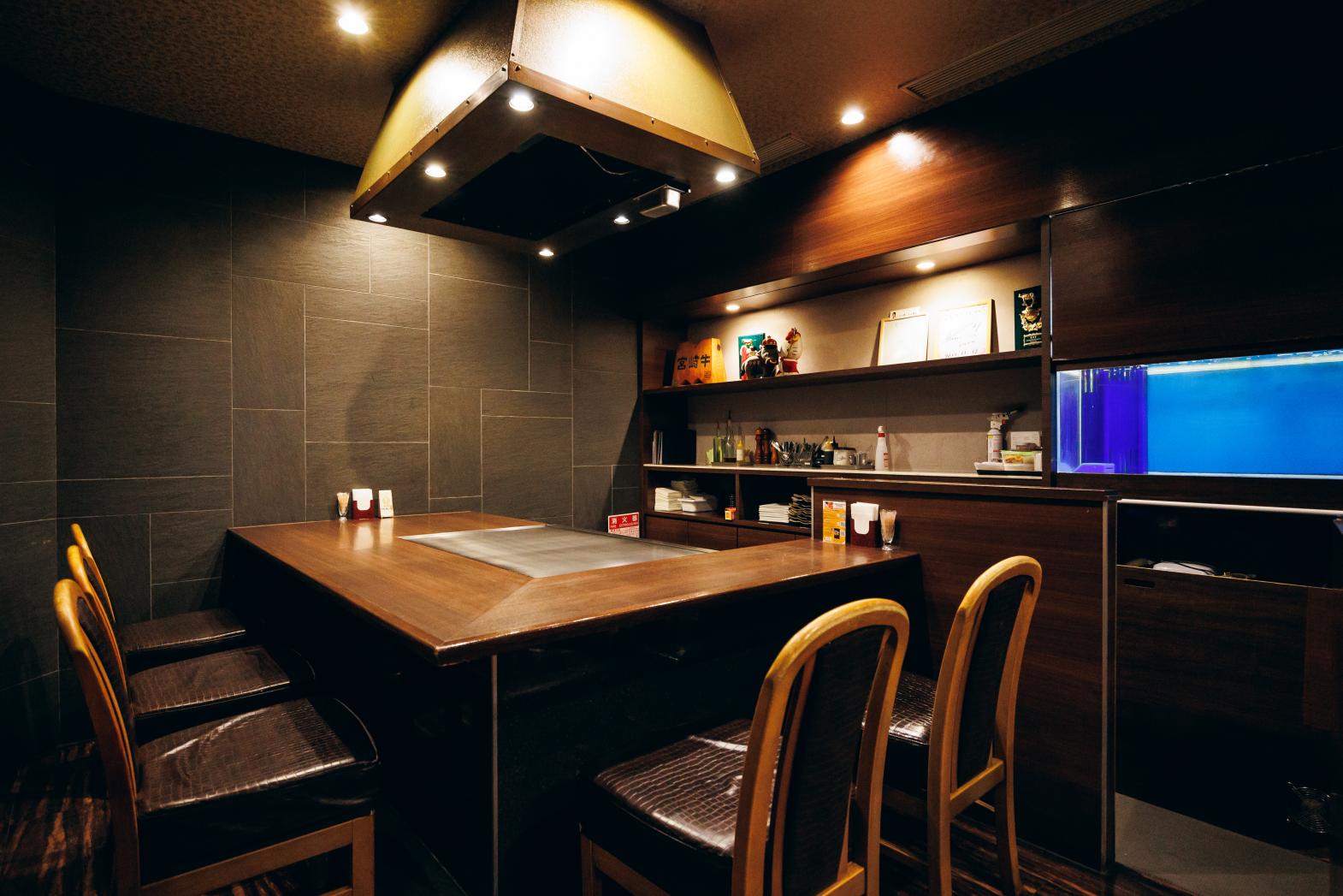 中心市街地イチの賑わいがある場所で、昼は多くのビジネスマンに、夜は少人数からグループ、家族連れまで幅広く利用されている人気店です。人気の秘密は全国和牛能力共進会で4連覇を達成した宮崎牛をランチやディナーでもリーズナブルにいただけるという、JA宮崎経済連直営店だからこそのメニューがあるから。まちなかで最高の宮崎牛を気軽にいただけるとあれば、お客さまから支持されないはずがありません。国内だけでなく海外にまでその名を轟かせた宮崎牛を求めさまざまな方が訪れます。調理は宮崎牛のおいしい食べ方を知り尽くしたシェフが担当。鉄板焼きコーナーで見事なヘラさばきを見ることができます。ホールスタッフの接客にも満足です。