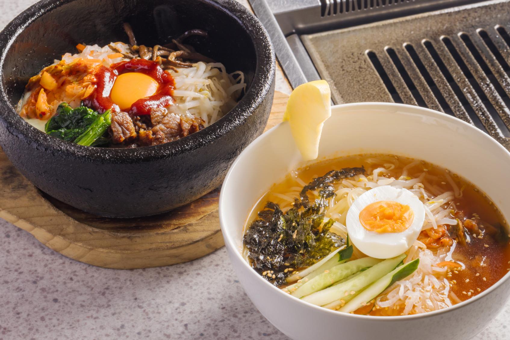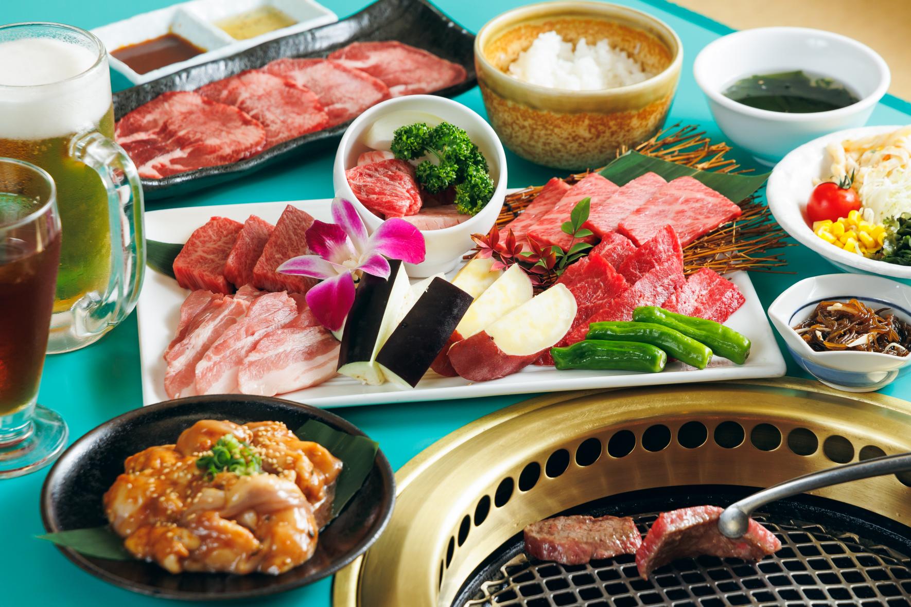 クラシカルな雰囲気が居心地抜群、創業50年を超える老舗の焼肉専門店。一頭買いする宮崎牛の多彩な部位をフレッシュな状態でリーズナブルに楽しめます。イチオシの「マスターおまかせコース」は、ロースにカルビ、みやざき地頭鶏、県産ポークなどが味わえる大満足のセット。極上ロースや特選ヒレが付くものもあり、3種からセレクト可能です。さらに平日のランチタイムには、数量限定で焼肉、冷麺、石焼ビビンバなど5種から選べる定食メニューも充実。創業時から受け継がれてきた、手づくりにこだわる秘伝のポン酢やゴマダレが上質な肉の旨味を引き出し、自家製のニンニクしょう油や薬味唐辛子で味変を。本場の韓国料理が味わえるのも魅力です。