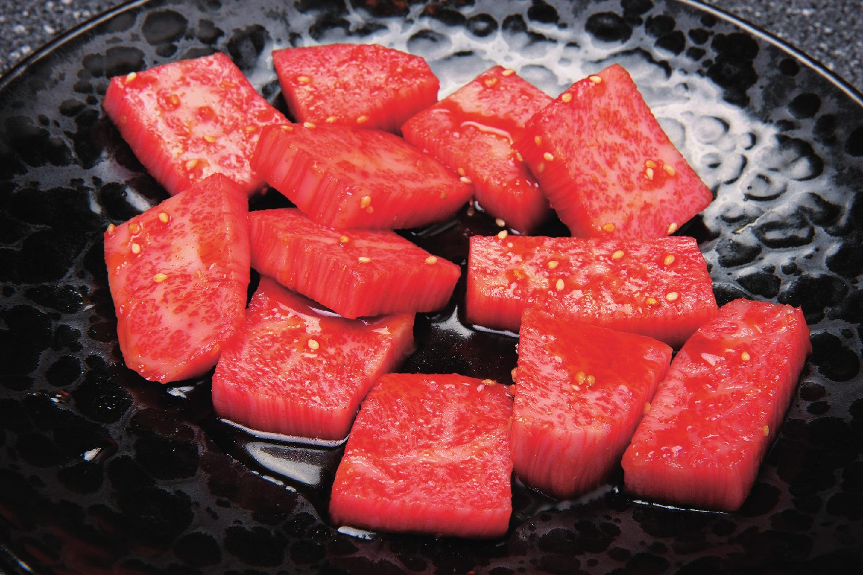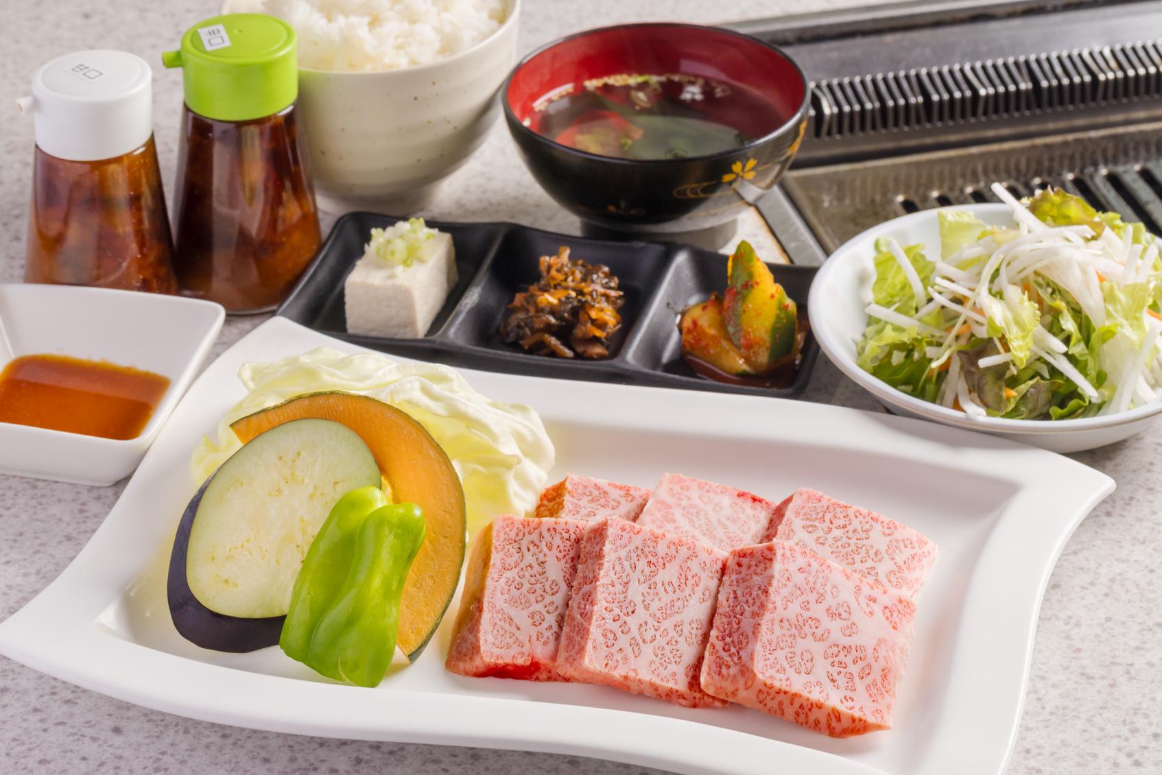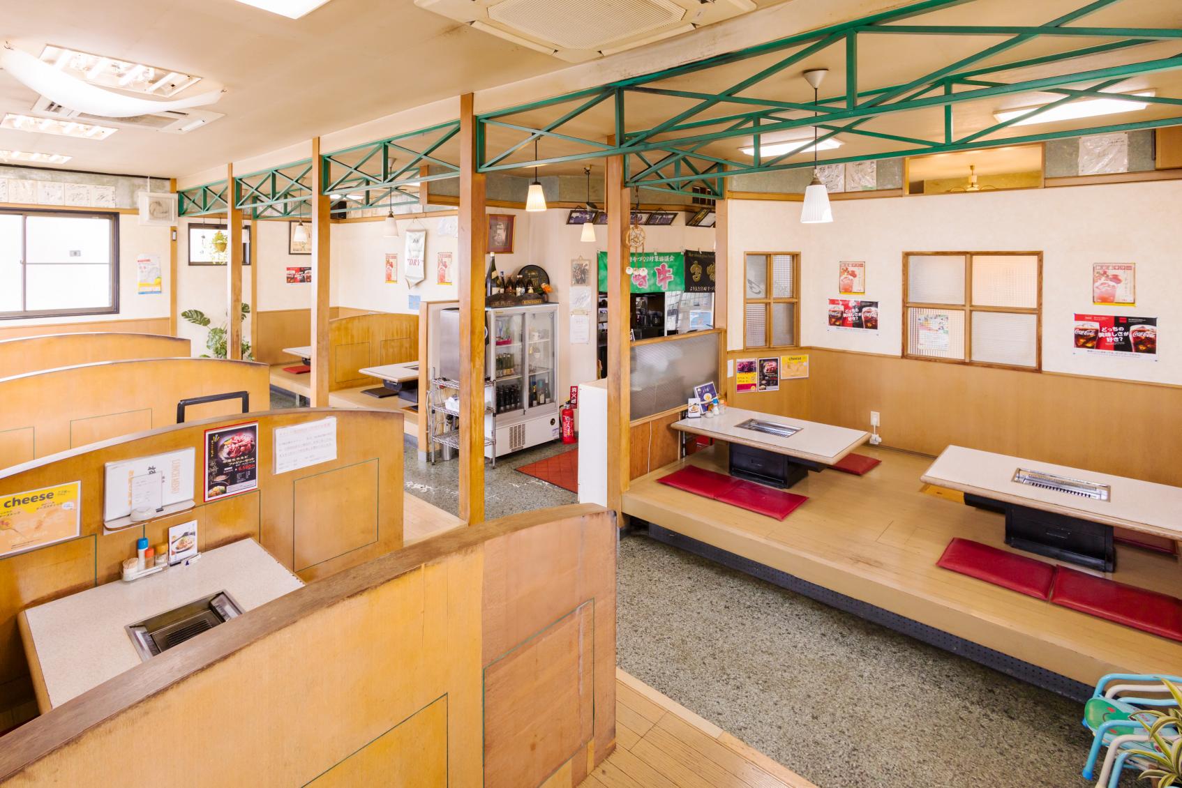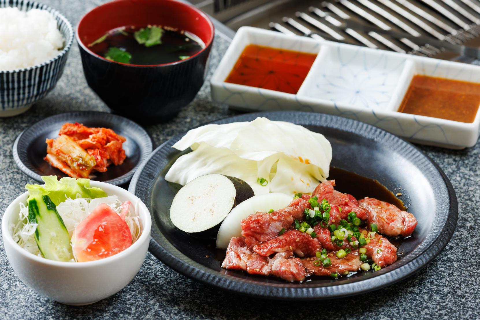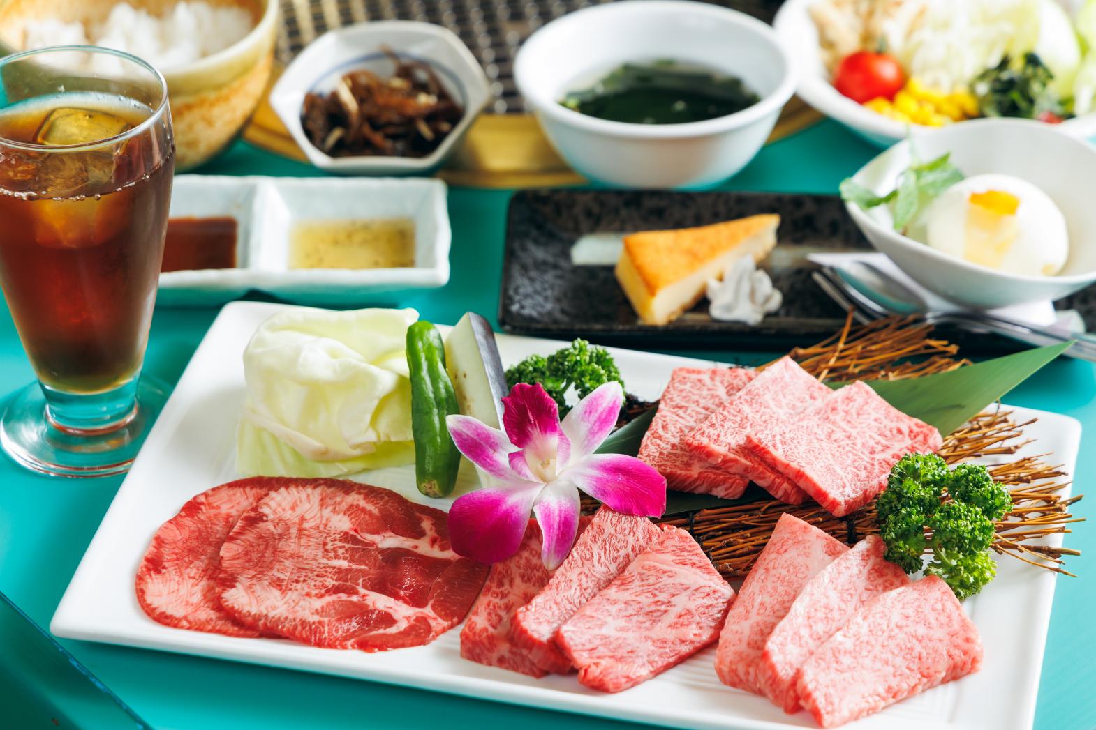 「常に食べる側の気持ちに立って、美味しいお肉をお得に提供したい」と二代目店主の宮本寛さん。昭和57年の創業以来、プロが目利きする上質ながらリーズナブルな価格で味わえる宮崎牛を目当てに、多くの客で賑わう焼肉専門店です。一番人気は「特選カルビ定食」。大胆に入ったサシが美しい「三角バラ」といわれる希少な部位を惜しげもなく提供。1日かけて仕上げる自家製ダレとともに、お口の中でとろける極上肉がたまりません。そのほか焼肉タイムを彩るさまざまなメニューやお得なセットがめじろ押し。リピーター続出の名物、贅沢に宮崎牛を使用した「石焼ビビンバ」や、秘伝の牛骨スープにコシの強い透明な麺が美味なる夏限定の「冷麺」もぜひ。