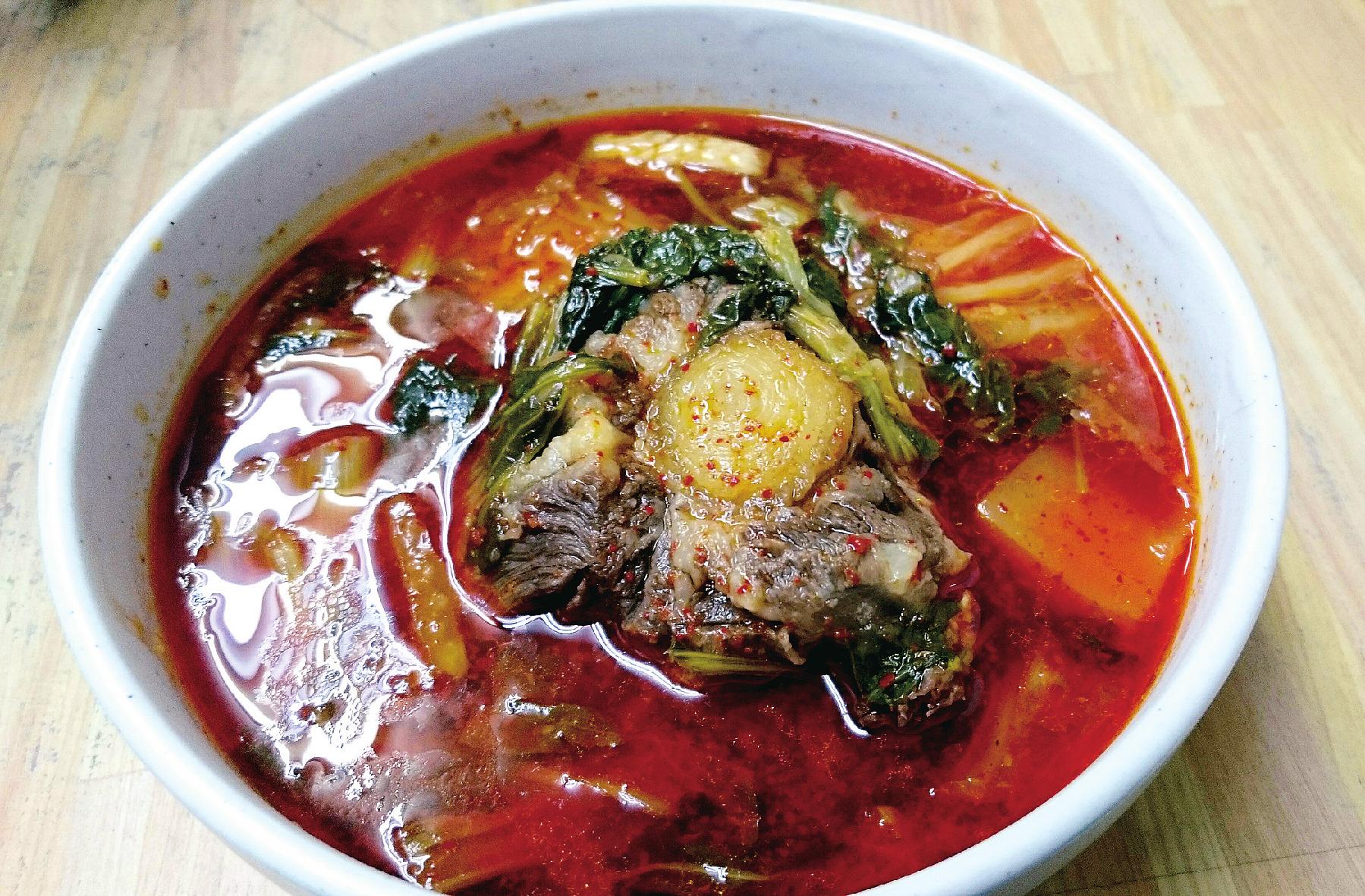 個室で炭火焼肉が堪能できるお店とあり、プロ野球選手や芸能人などの来店も多く壁に貼られた色紙が目を引きます。同店では宮崎牛をさらにおいしく食べていただきたいと、脂とスジを丁寧に取り除く職人技を施し、とろけるような見事な宮崎牛を楽しませてくれます。定番の人気メニュー『上塩タン』は絶妙な下味がつけてあるので、まずはレモンを絞ってじっくり焼いてどうぞ。『特選ロース』は厚めの肉から旨味が染み出すおススメの一品。隠れメニューとして人気なのが『薬膳テールスープ』。2種の韓国産トウガラシや数種の薬膳を牛テールと煮込み、トロリとしたテール肉と濃厚で程よい辛さのスープを楽しめます。肉とともに堪能したい味わいです。