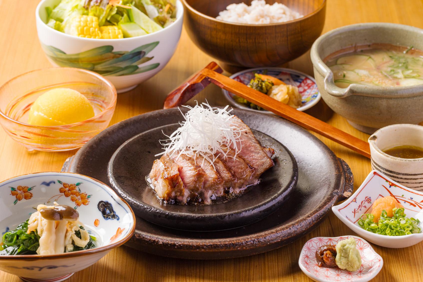 昭和45年の創業以来、半世紀以上にわたって県内外から多くの常連客、観光客を迎える日本料理専門店。伝統の中で磨きぬかれてきた、職人の手技が生きる郷土料理をゆったりと味わうことができます。平成5年には宮崎牛指定店に認定。長年愛され続ける「宮崎牛ロース醤油焼」は、自家製のしょう油ダレに漬け込み石焼にすることで、とろける味わいが絶妙な一品。白髪ネギや柚子もろみで味変しながら楽しめます。さらに昔ながらの家庭料理だった冷や汁を宮崎のご当地グルメとして定着させた同店ゆえ、自慢の冷や汁をはじめ、地元食材を使用したメニューや焼酎も充実。宮崎の旬の恵みを味わいながら、宮崎をもっと好きになれる、宮崎きっての名店です。