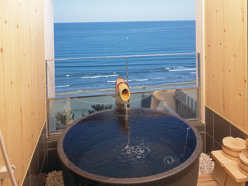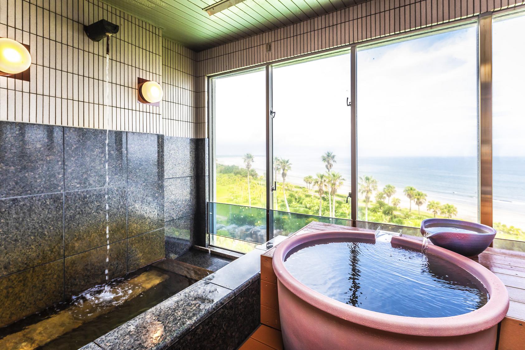 最上階の展望露天風呂からは、青島はもちろん、広大な太平洋を望められます。