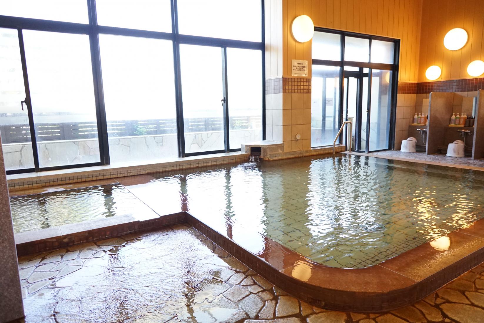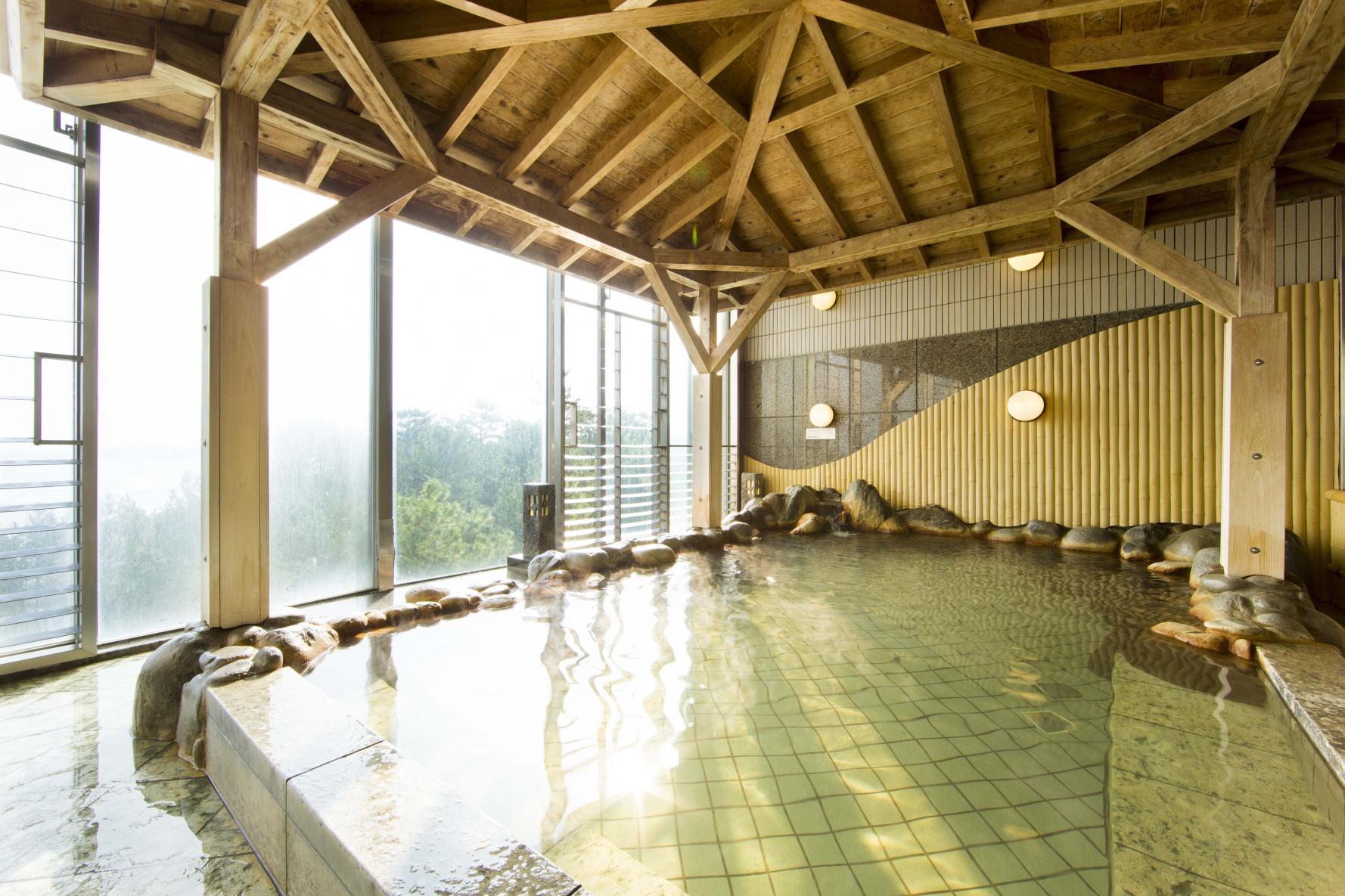 展望大浴場は1日250トンの湯出量を誇る44℃の天然の自噴温泉(加湿あり)で、トロっとした泉質が特徴。入浴後も思わず触りたくなるはず♪