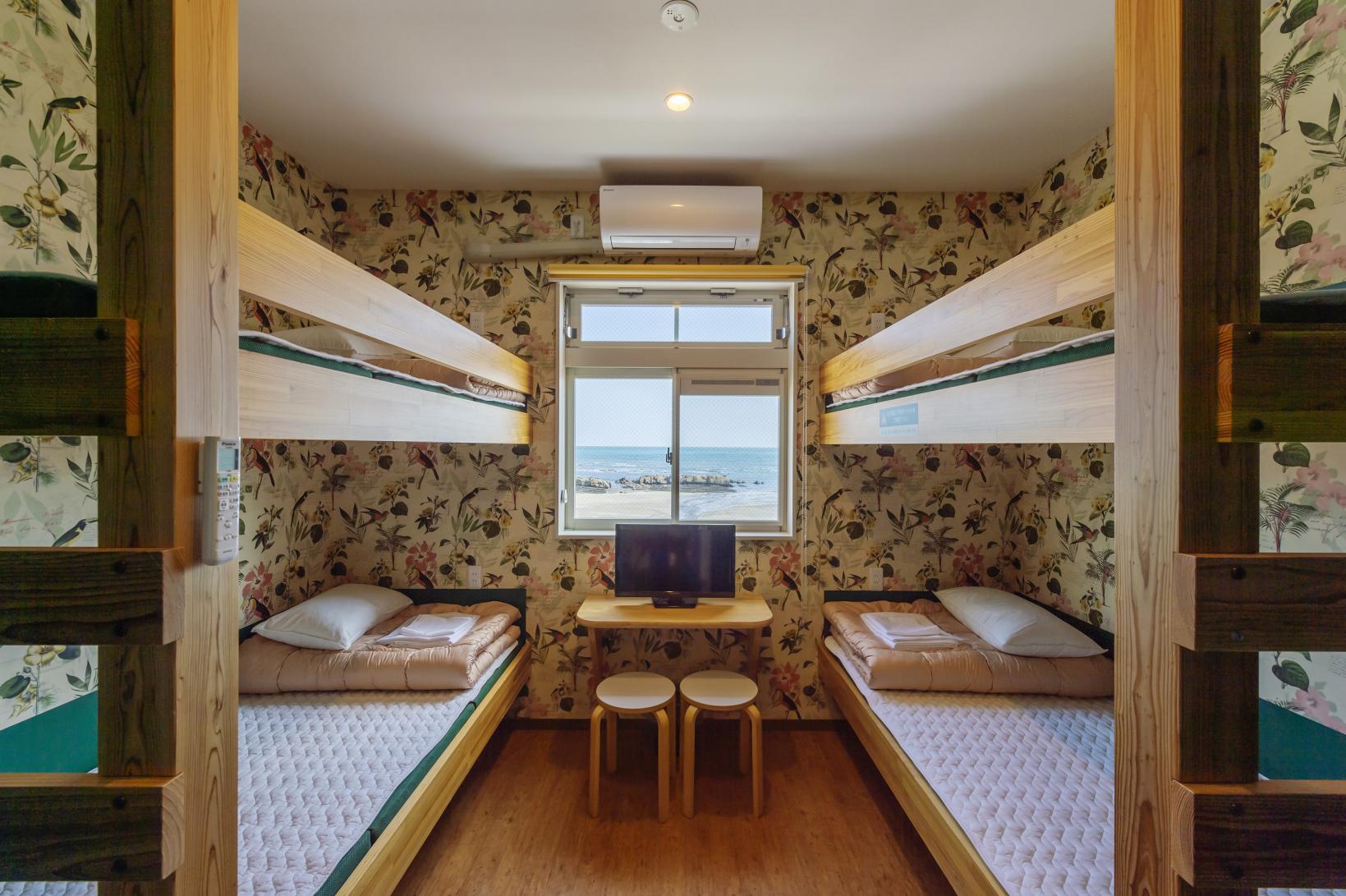 小窓を開けると、砂浜と海が広がる絶景を堪能できます。