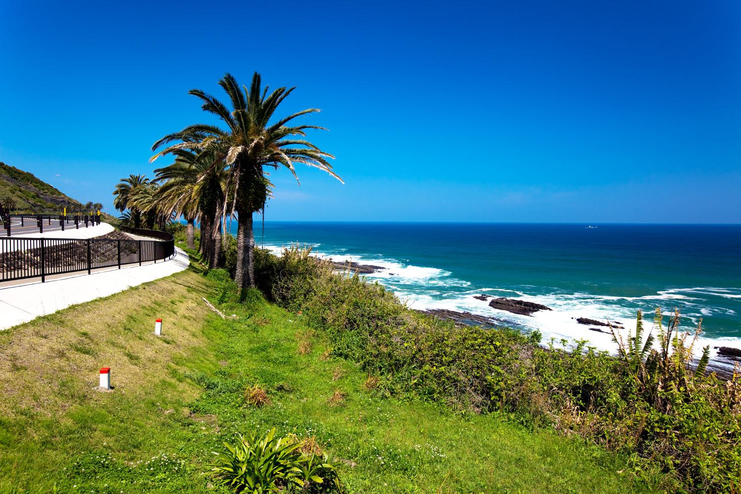 『堀切峠』は、青い海と空、フェニックス並木がまるでハワイっぽい南国ムードが感じられるスポットです。絶景を背景に撮影すればインスタ映えすること間違いなし!