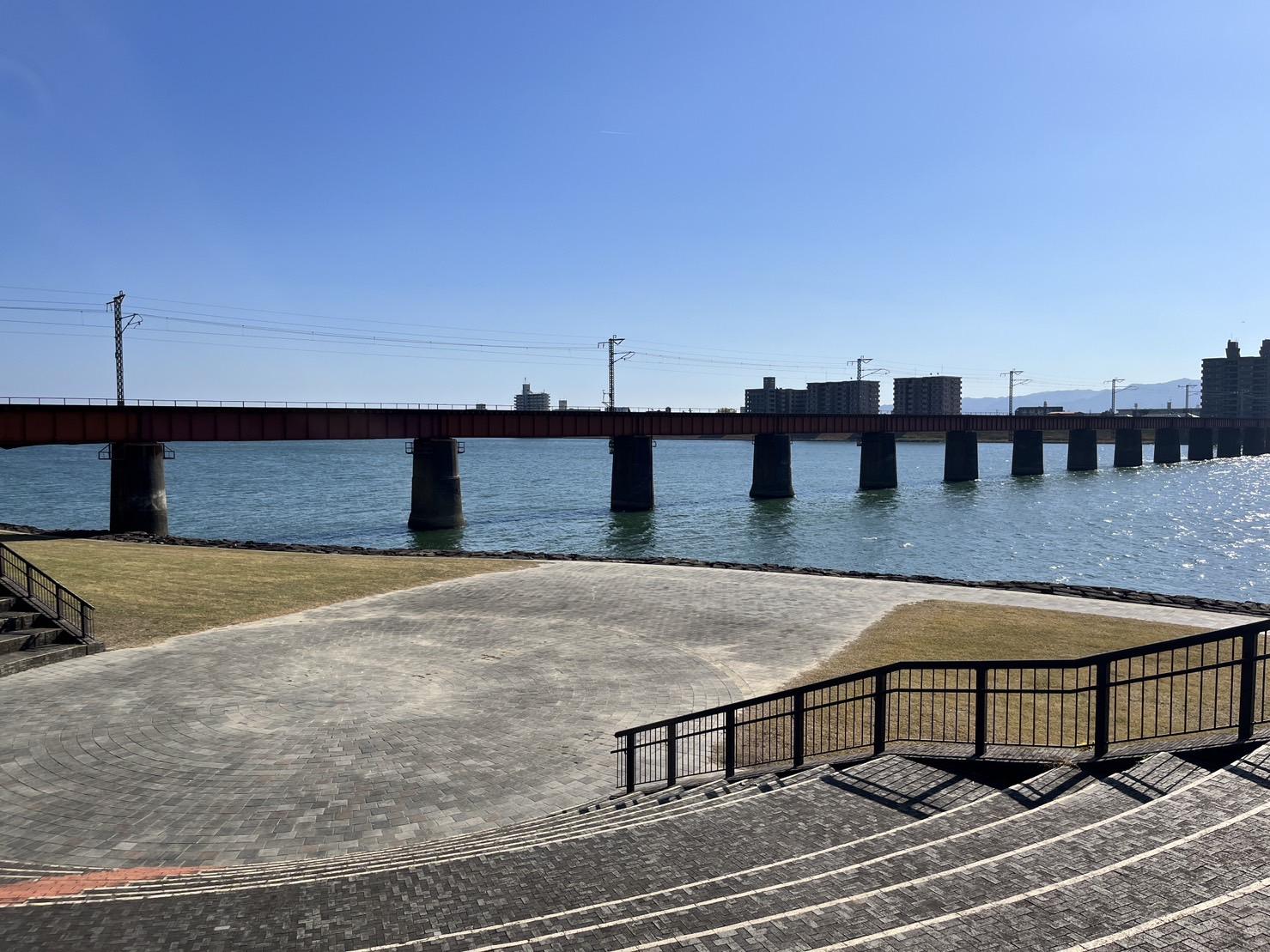まず1つ目は大淀川。宮崎県を代表する河川です。宮崎駅から南宮崎駅をつなぐ日豊本線の大淀川橋梁。ここを撮影するのが宮崎市だけでなく全国的に有名な鉄道の撮影ポイント。海から朝日が昇り、川の方に夕日が沈むので場所や時間、季節によって雰囲気の違う写真が撮影できます。宮崎の中でも走る列車の本数も多いため、比較的撮影しやすいのもおすすめできるポイントのひとつです。