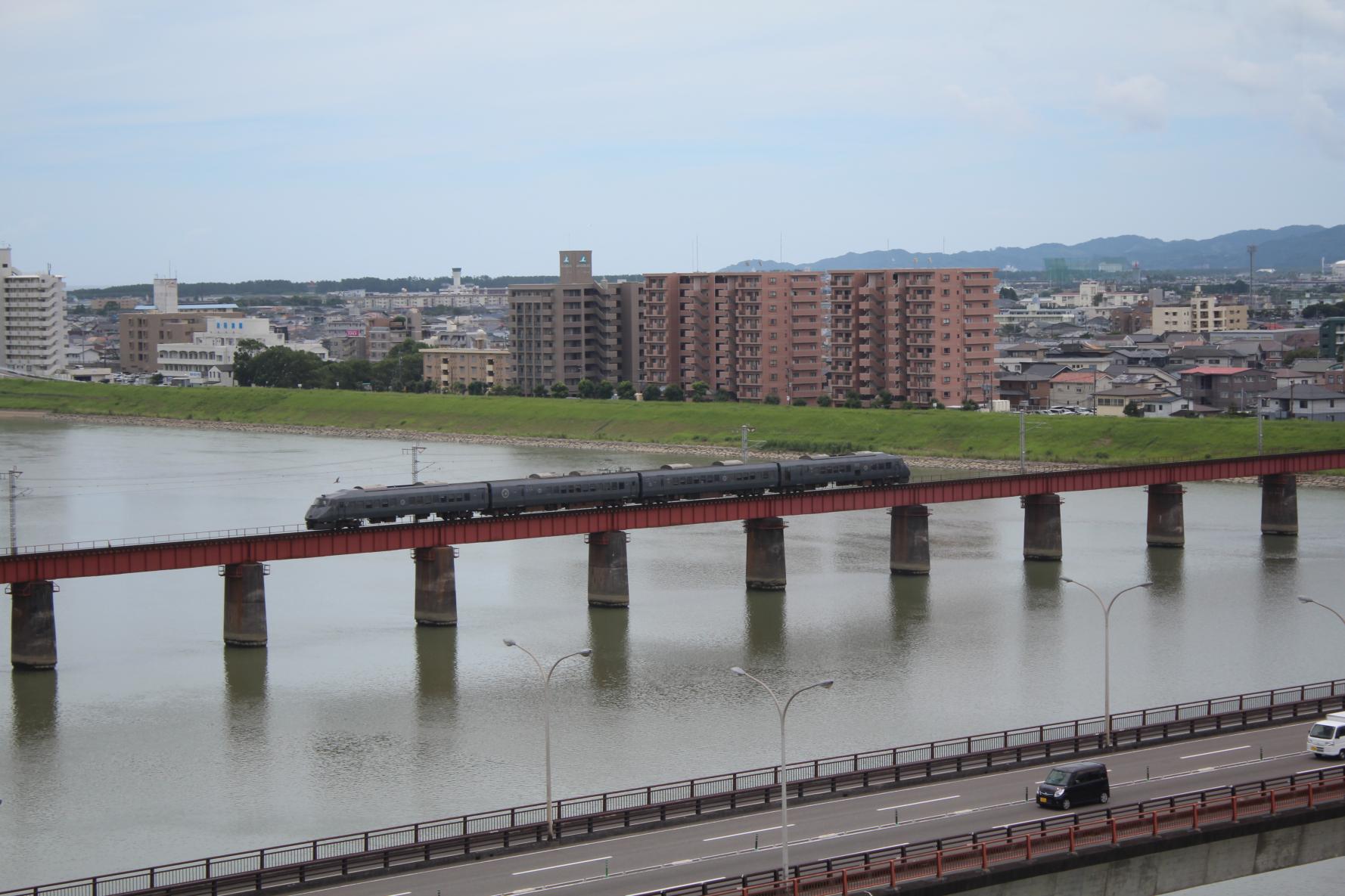 次におすすめするのは宮崎観光ホテルの客室から撮影する大淀川橋梁。1つ目に紹介した大淀川を撮影するのは同じですが、なんと宮崎観光ホテルには、鉄道好きにはたまらない、鉄道好きのためのお部屋がご用意されています。その一室には、鉄道の写真やグッズが部屋には飾られています。なんとここは田代剛さんのプロデュースのお部屋なのです。お部屋でゆっくりしながらも、大好きな鉄道を眺められるトレインビューのお部屋。