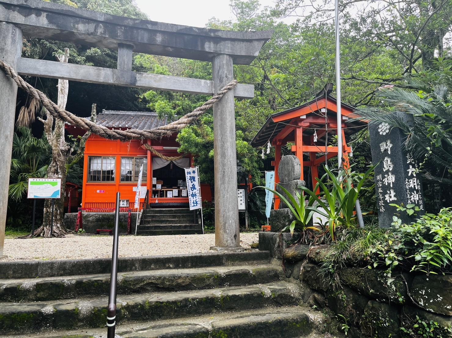列車を降り、小内海駅から徒歩2分ほどで行ける「野島神社(のしまじんじゃ)」がおすすめ。浦島太郎が辿り着き祀られたという伝説のある野島神社。また自転車やサーフボードのお祓いができる珍しい神社でもあり、飫肥杉で作られた「海のお守り」や「自転車のお守り」もあることから、サーファーやサイクリストが多く参拝されています。