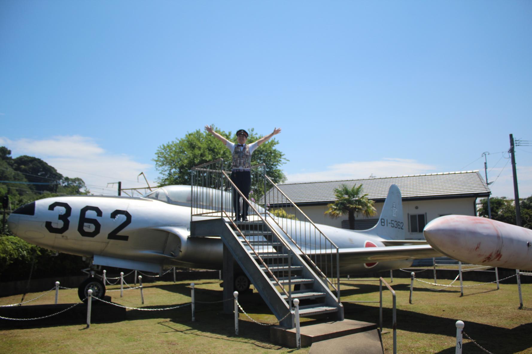 また、新富町には航空自衛隊の新田原基地があることから、駅の横には「T-33Aジェット練習機」が展示されています。「Tバード」の愛称で親しまれた歴史に残る傑作機。展示されている362号機は、昭和33年から平成3年まで活躍したものです。家族でも楽しめる日向新富駅。ぜひご利用ください。