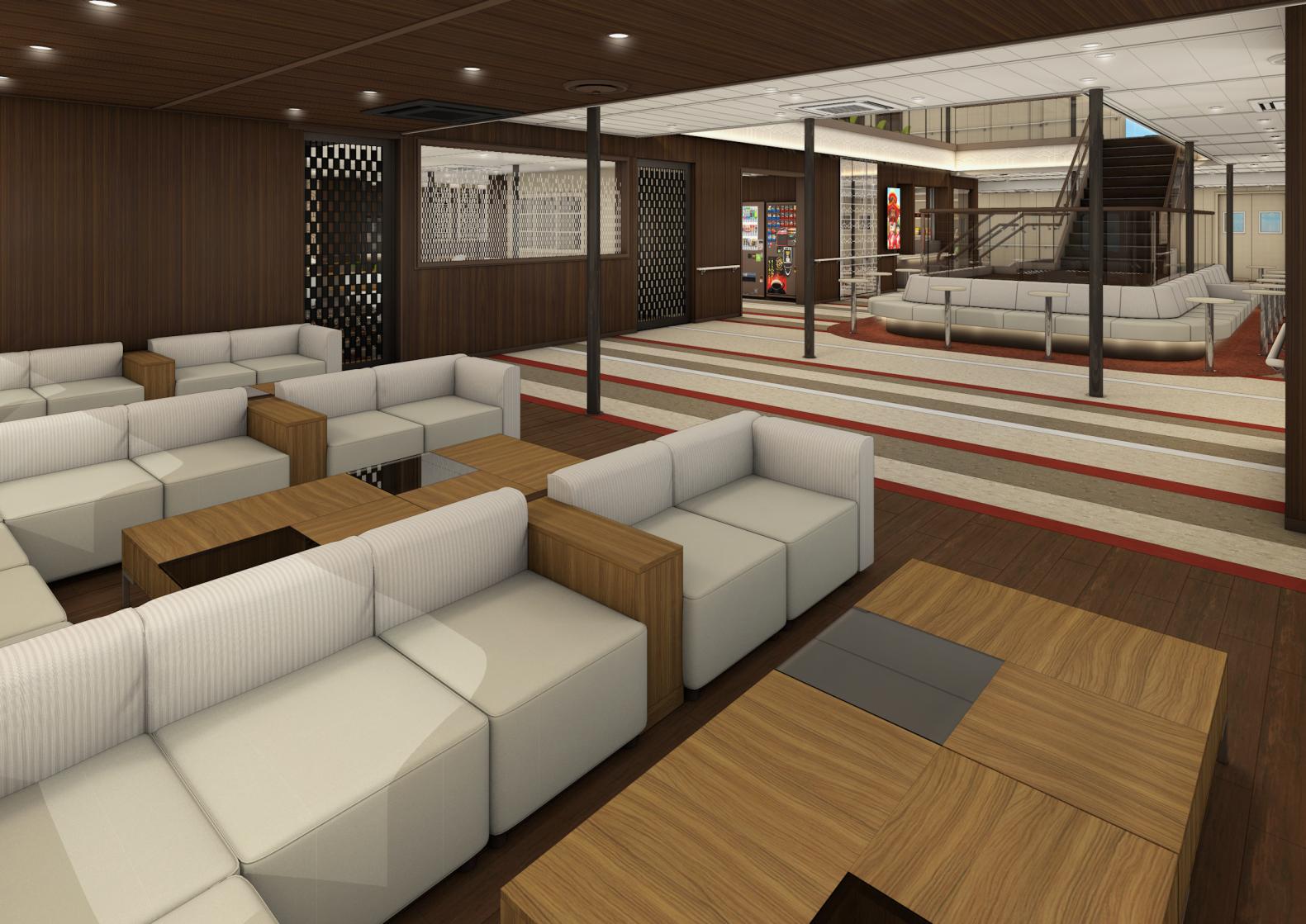 船の中とは思えないきれいで素敵な船内。新船になった今年、この機会にぜひ乗船してみてください♪