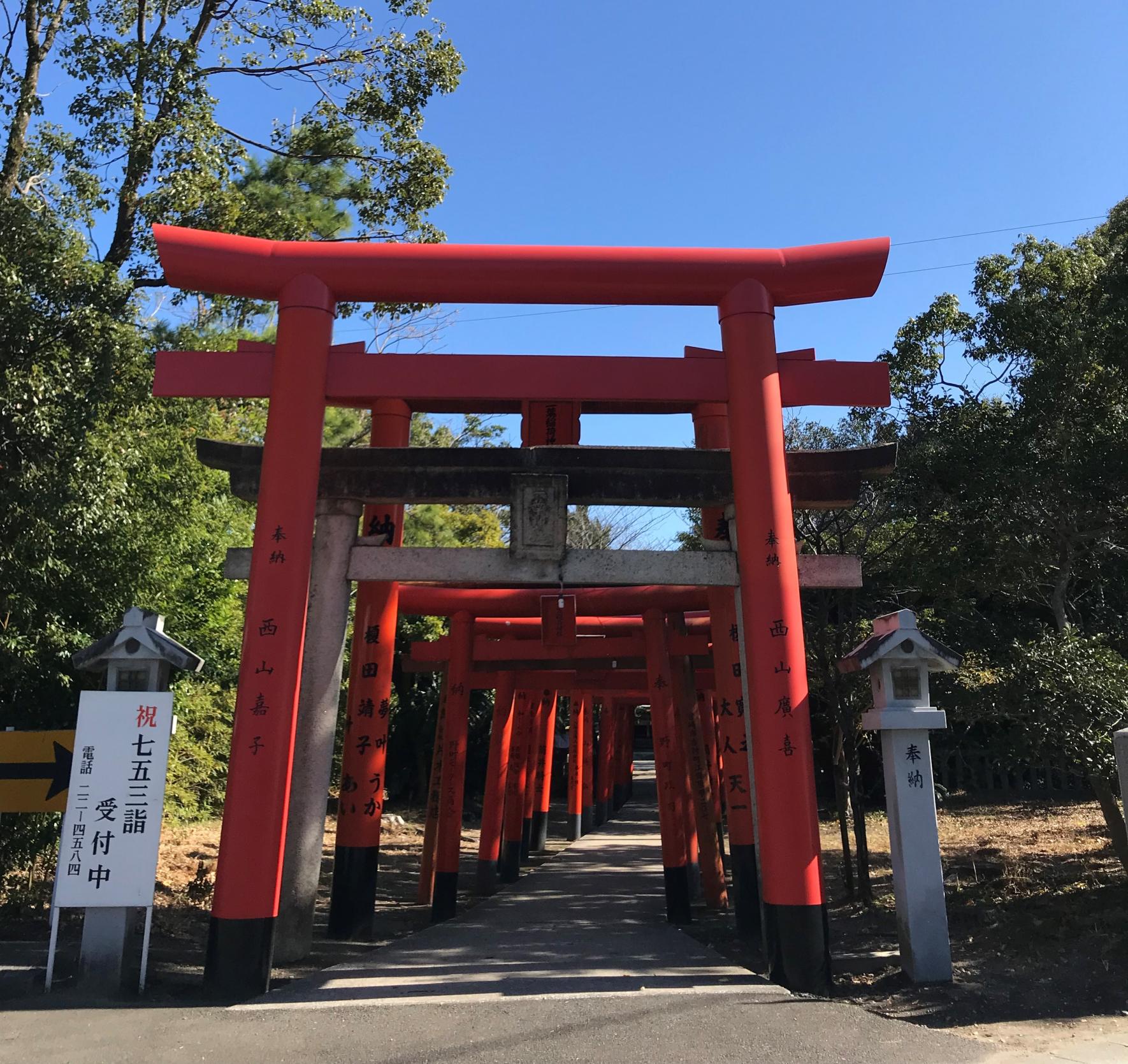 五穀豊穣 ・商売繁盛 などの「倉稲魂命」が祀られています。末社に恵比寿神社や銭洗い神社があり、ご利益があると言われています。