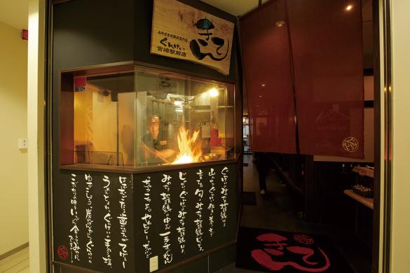 新鮮なみやざき地頭鶏を網に乗せ、赤々とした炭火で豪快に焼き上げる。炭の香りをじっくりなじませ、絶妙の焼き上がりを見極める熟練の技。添えられたオリジナルの柚子こしょうがさらにうまさを引き立てる。