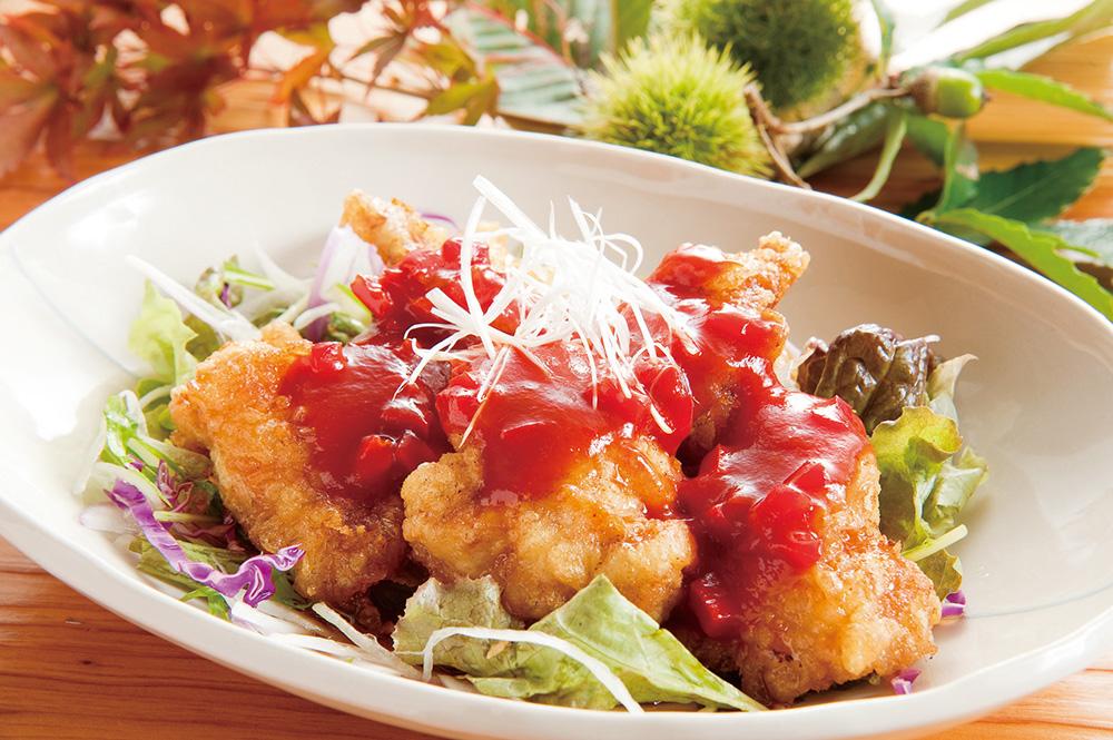 創業25年、宮崎産鶏もも肉を使った「座王」のチキン南蛮は2種類!宮崎郷土料理の定番「チキン南蛮」はタルタルソースがたっぷりかかり、とてもジューシーで濃厚なおいしさ!パプリカペース+トマトケチャップの特製ソース「赤のチキン南蛮」はジューシーさにチョイピリッが加わって新感覚のおいしさです。2種類同時に食べ比べてみるのもおすすめです。