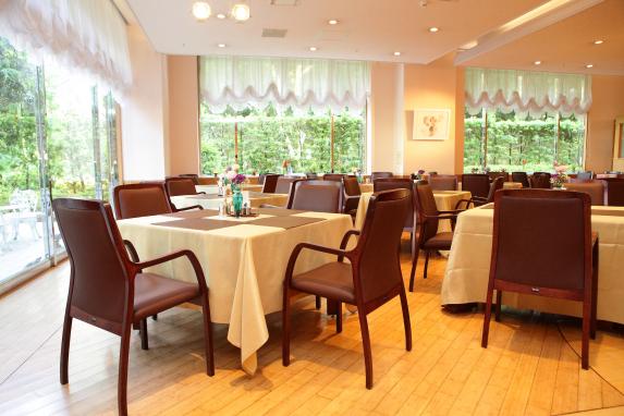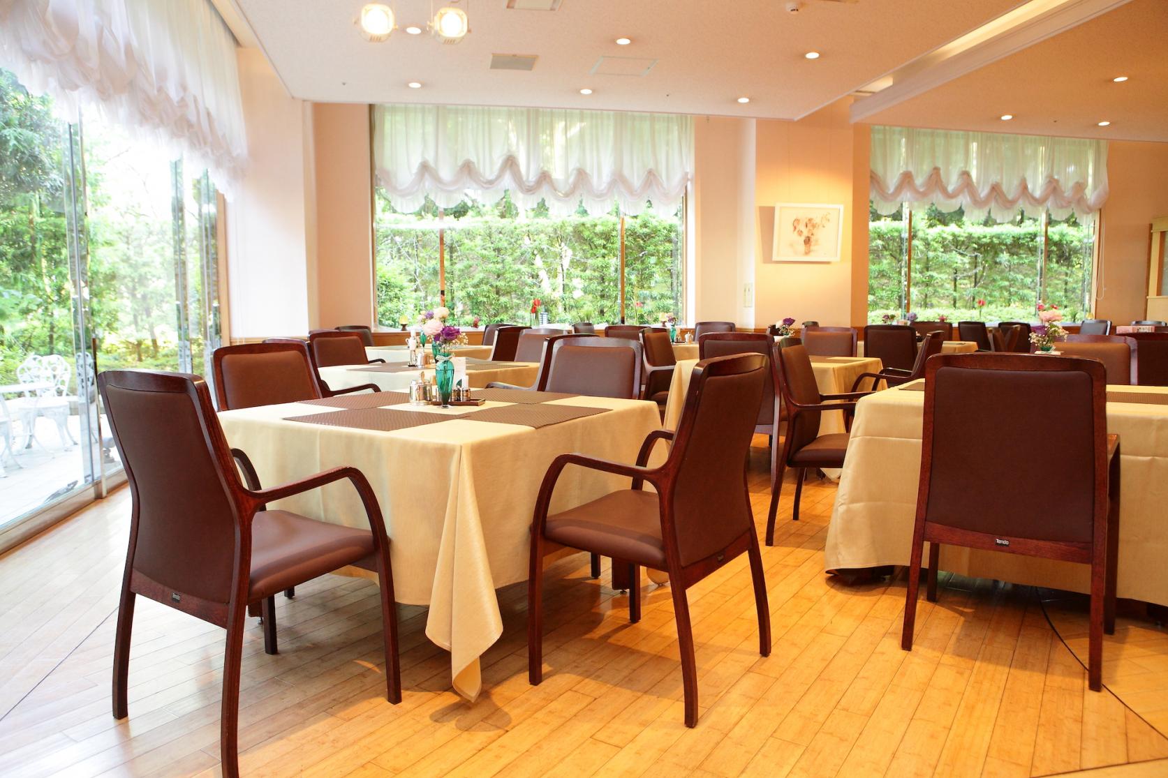緑に囲まれたやわらかな光が差し込むレストラン。