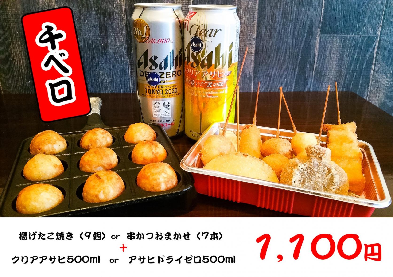 (揚げたこやき9個 or 串かつおまかせ7本)