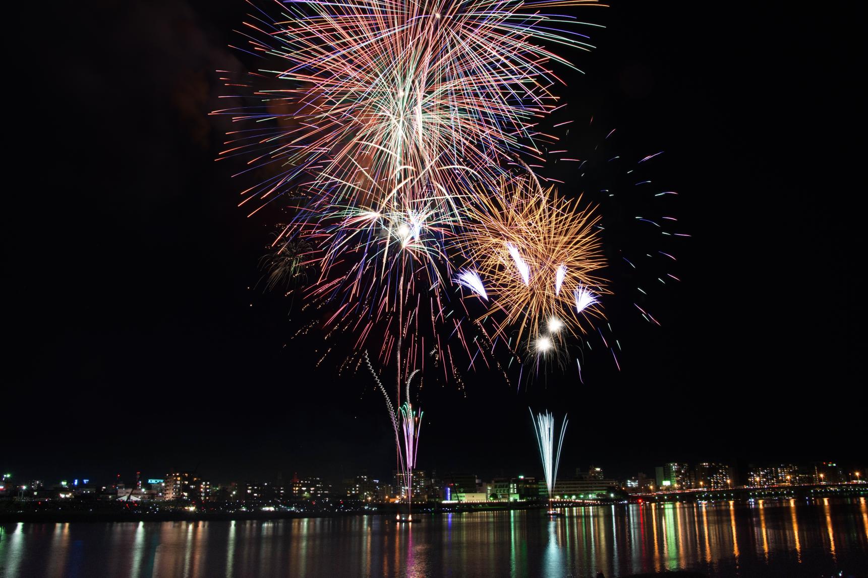 오요도 강의 하천 부지에서 개최되는 불꽃 놀이로, 약 1만발의 불꽃을 쏘아 올립니다. 피날레를 장식하는 불꽃(나이아가라)은 압권. 박력 넘치는 불꽃놀이를 관람할 수 있는 유료석도 있습니다.