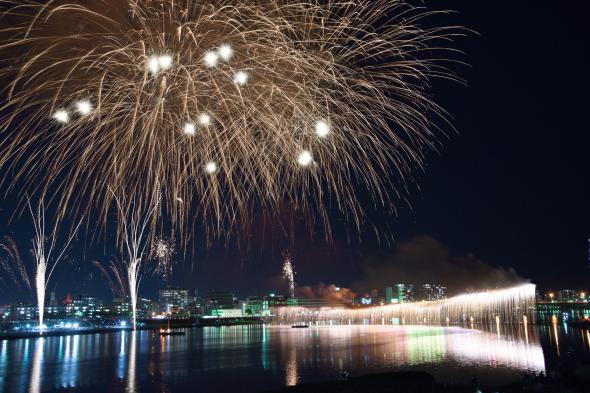 밤하늘을 수놓는 박력있는 불꽃놀이
