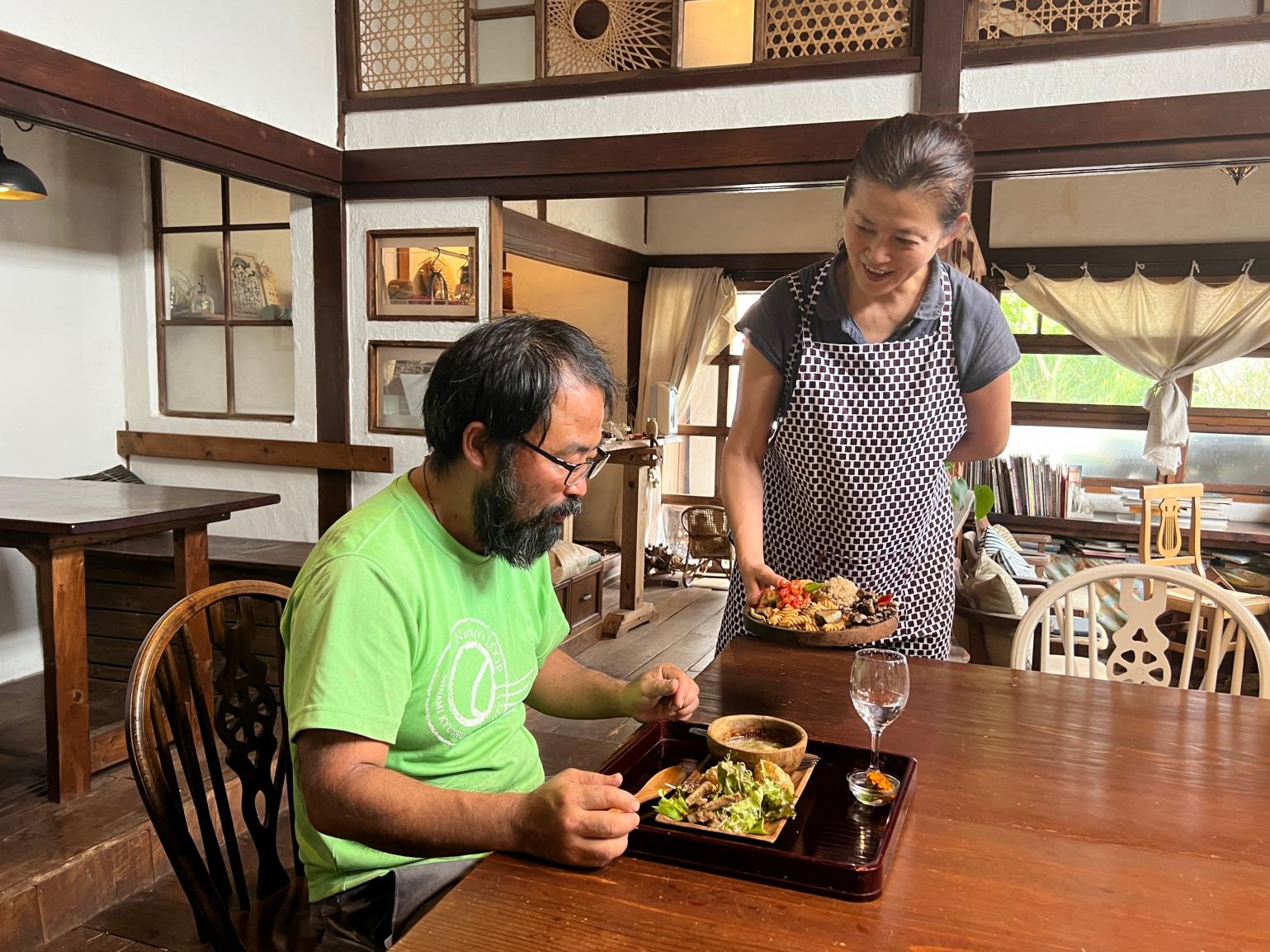 건강을 해친 경험에서 ‘식생활을 재검토하자’라며 자신을 위해 비건 요리를 탐구, 그 결과 몸이 정돈되어 매우 건강해짐. 미야자키 농가와의 인연도 있어 2021년에 카페를 오픈하게 되었다고 합니다.