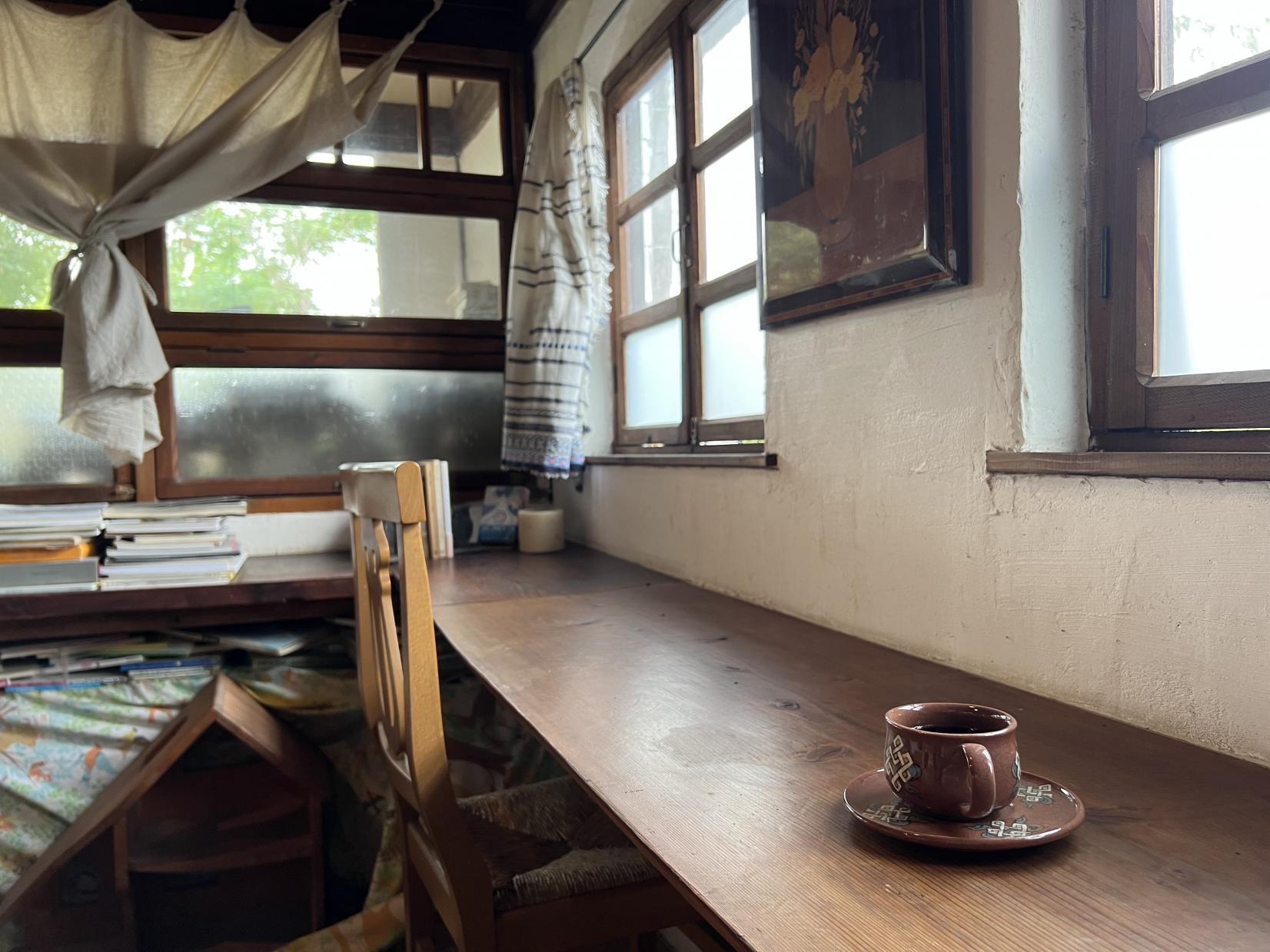 카페의 부지 내에 펼쳐진 무성한 정원과 개방감 넘치는 점내는 높은 천장과 빛이 내리쬐는 큰 창, 벽난로를 둘러싼 소파석이나 독서를 즐길 수 있는 로프트 스페이스(유료) 등이 있어 사색의 시간을 보낼 수 있습니다.