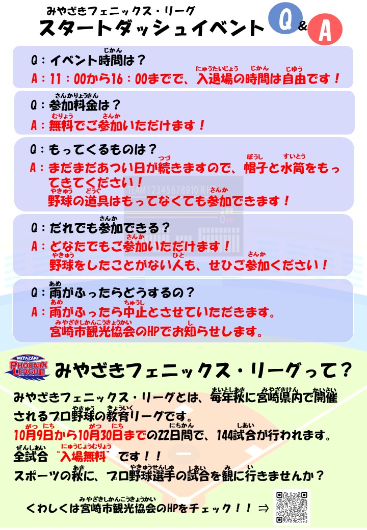 【10/1】第20回みやざきフェニックス・リーグ スタートダッシュイベント開催決定!