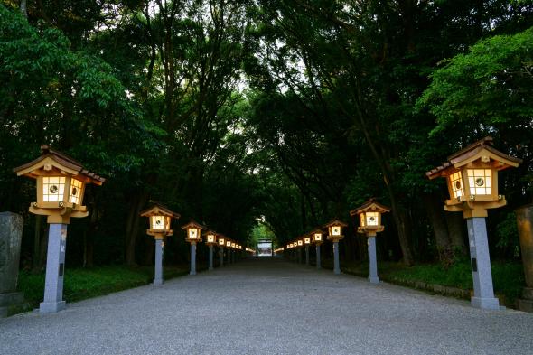 灯篭が灯る参道は神秘的な雰囲気が漂い、歩くだけで心身が浄化されたような気分になります。