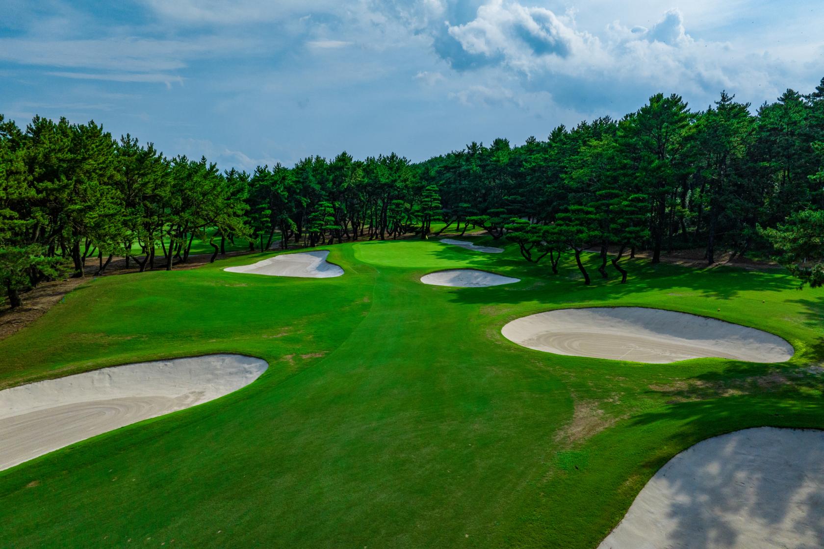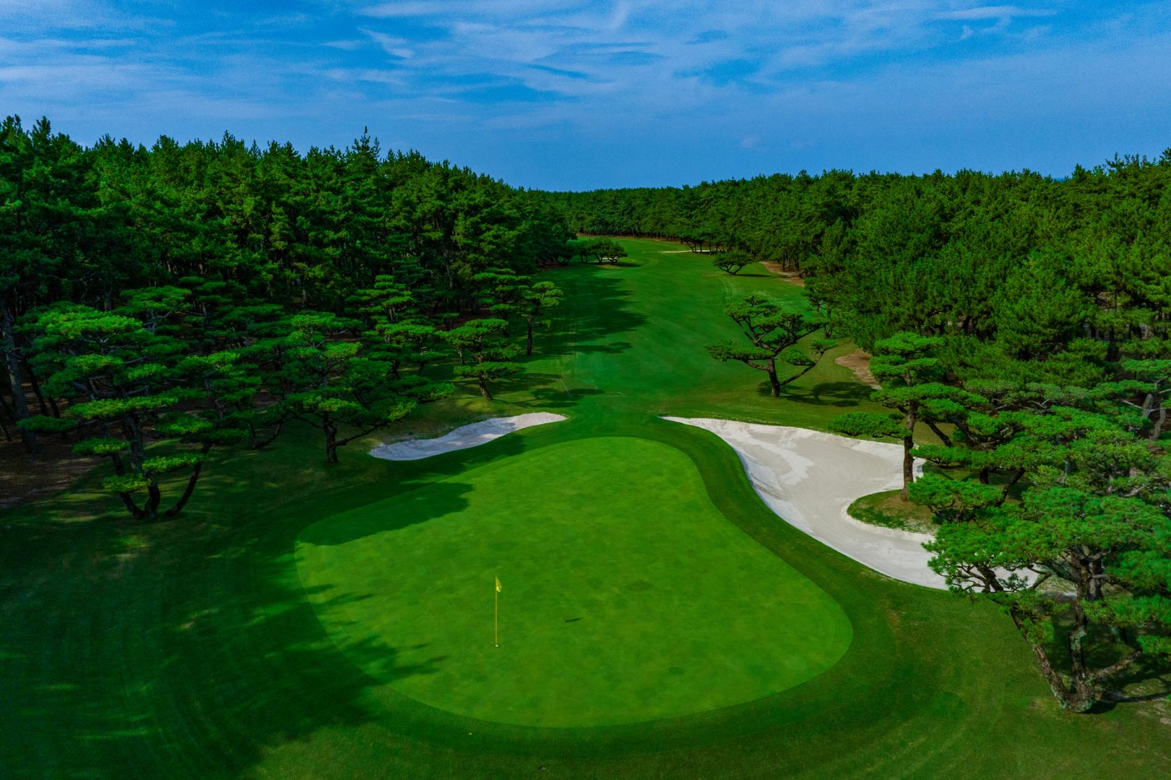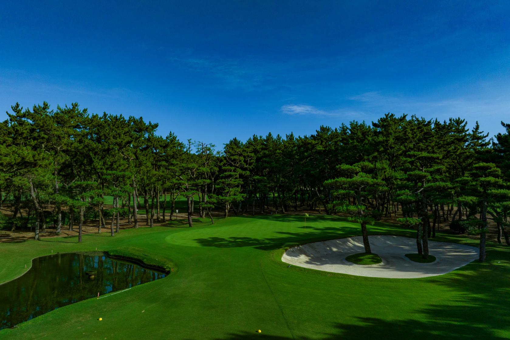 一ツ葉海岸の黒松林に沿ってレイアウトされた27ホールは、その美しさとは裏腹にエキサイティングなコースとなっており、年間を通して緑の洋芝でプレーいただけます。