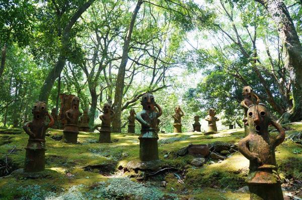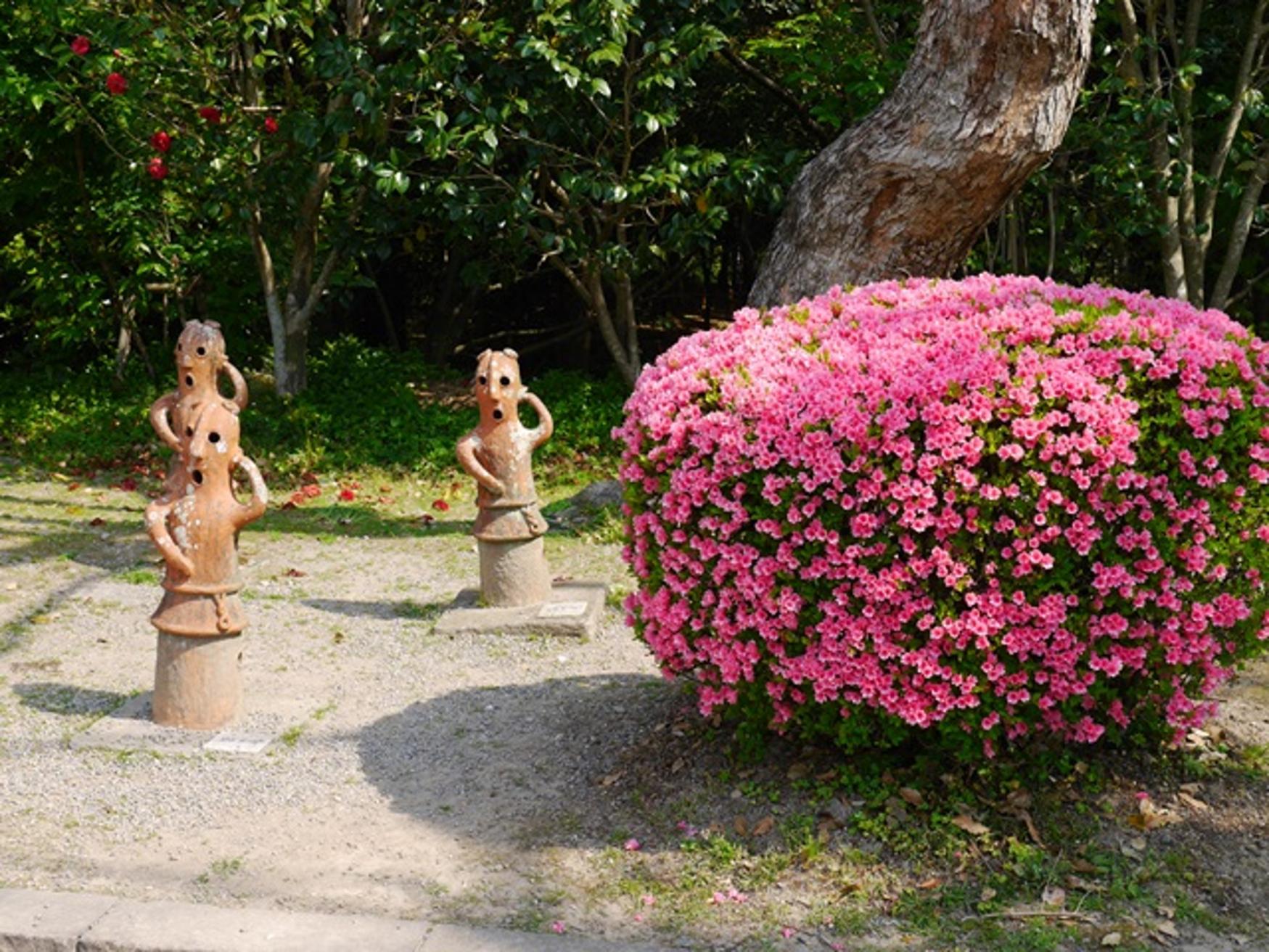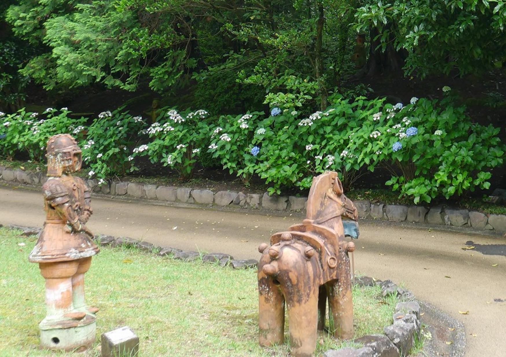 園内には古代ムード漂うはにわ園があり、緑あふれる森の中に400体ものはにわのレプリカが佇んでいます。一体一体、表情やシチュエーションも異なり、じっくり眺めて歩くのも一興です。