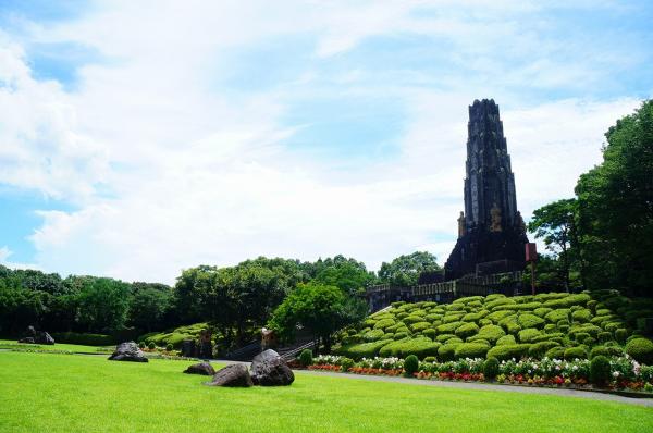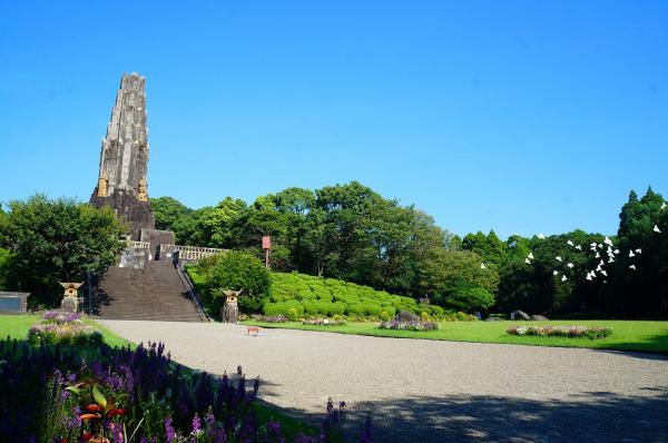 公園のシンボルでもある平和の塔は、高さ37mと圧巻の巨塔で、展望台からは宮崎の市街地が眺められます。