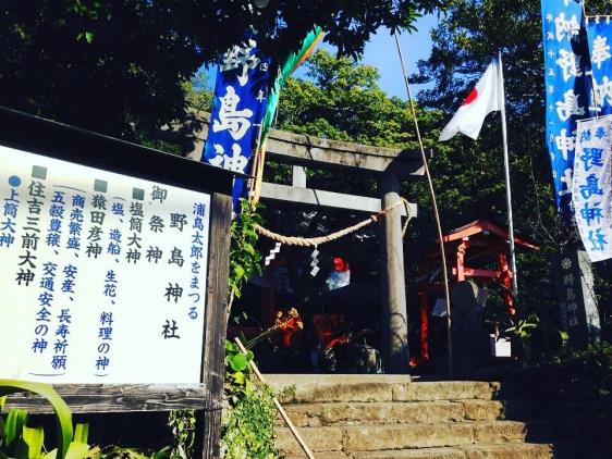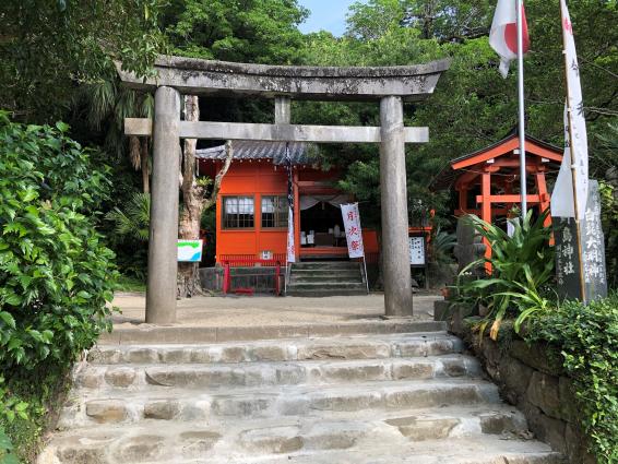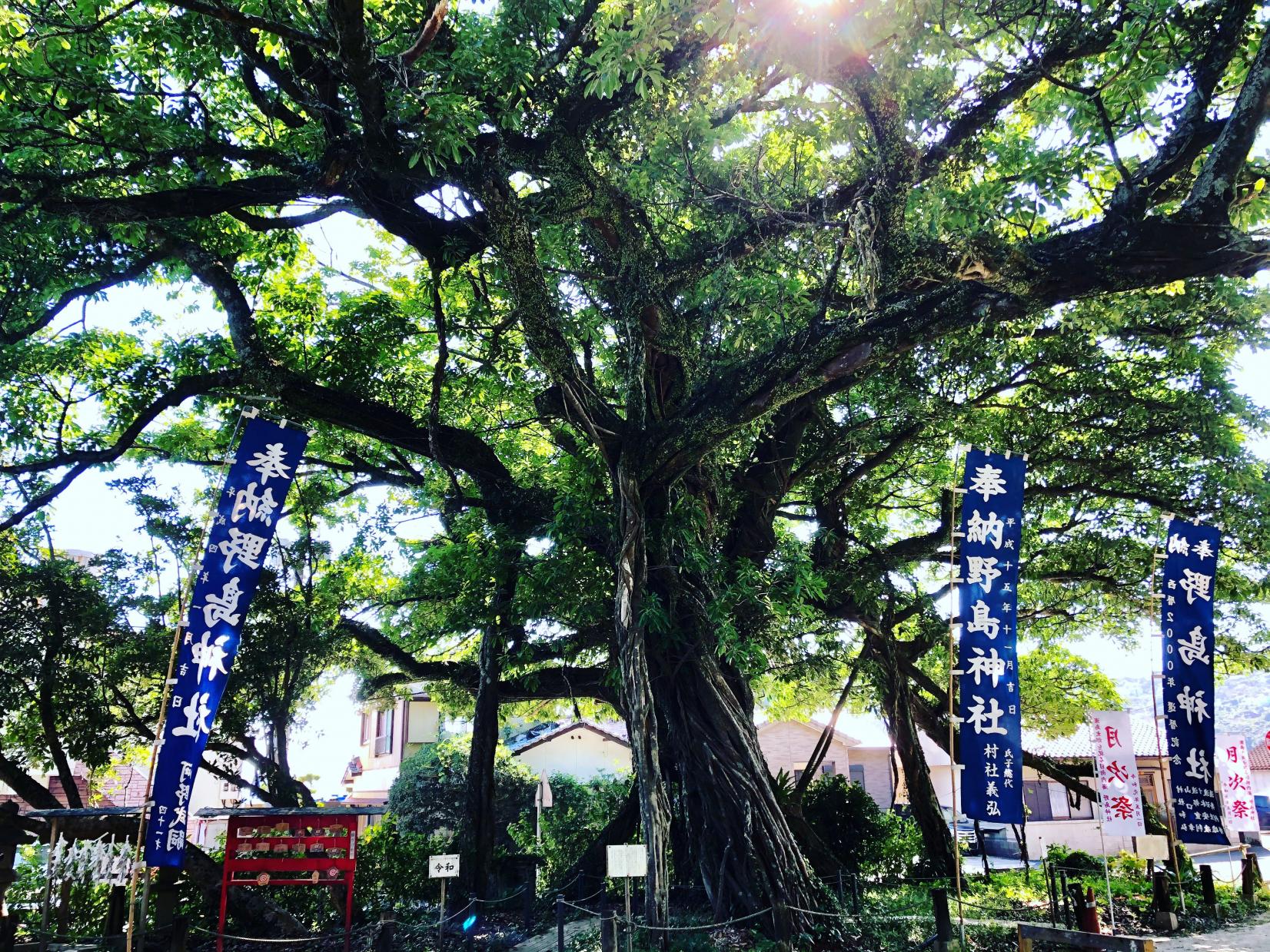 浦島太郎が辿り着き祀られたという伝説のある野島神社。神社境内は、国の天然記念物に指定されている「アコウ」の樹で覆われ、バナナの木も自生するなど自然豊かです。