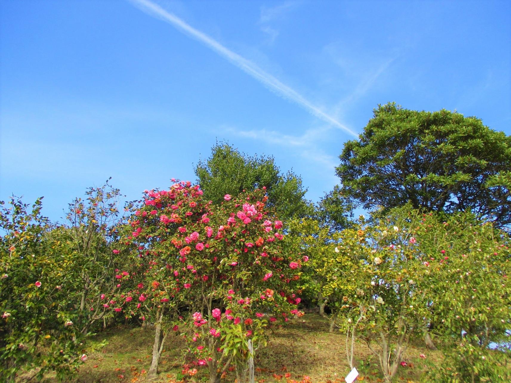 ヤブツバキを中心に約1000種、約48,000本が植えられています。平成15年には国際ツバキ会議から国内初の「国際優秀ツバキ園」に認定されました。 花の見頃/2月上旬~3月上旬