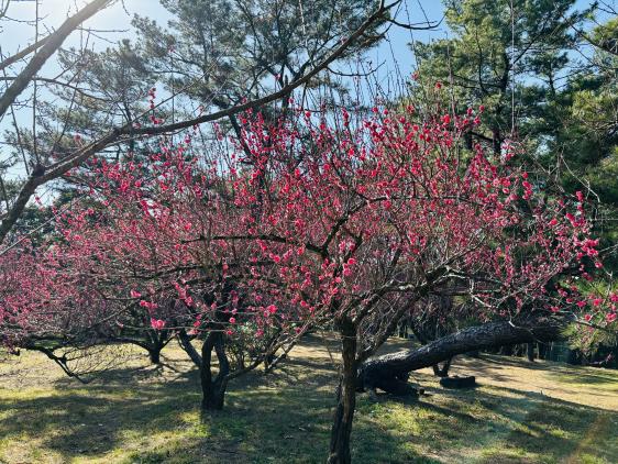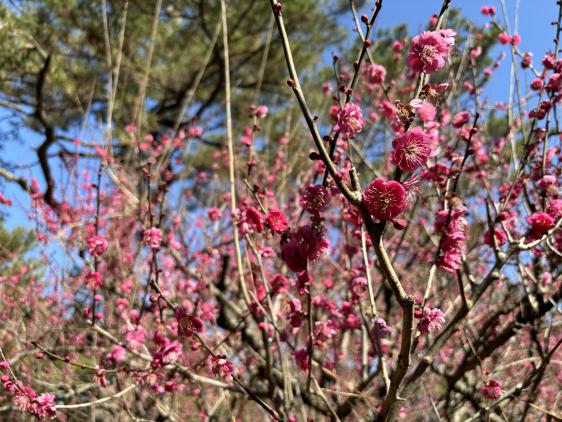 境内の奥には1月下旬から2月中旬にかけて美しい紅梅が見られる月見ヶ丘梅園があります。