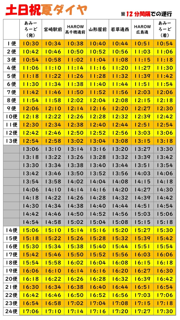 夏ダイヤ時刻表は、関連資料をご確認ください。