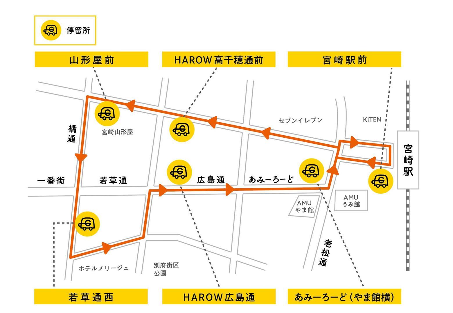 宮崎駅周辺とまちなかを結ぶグリーンスローモビリティが運行中です。