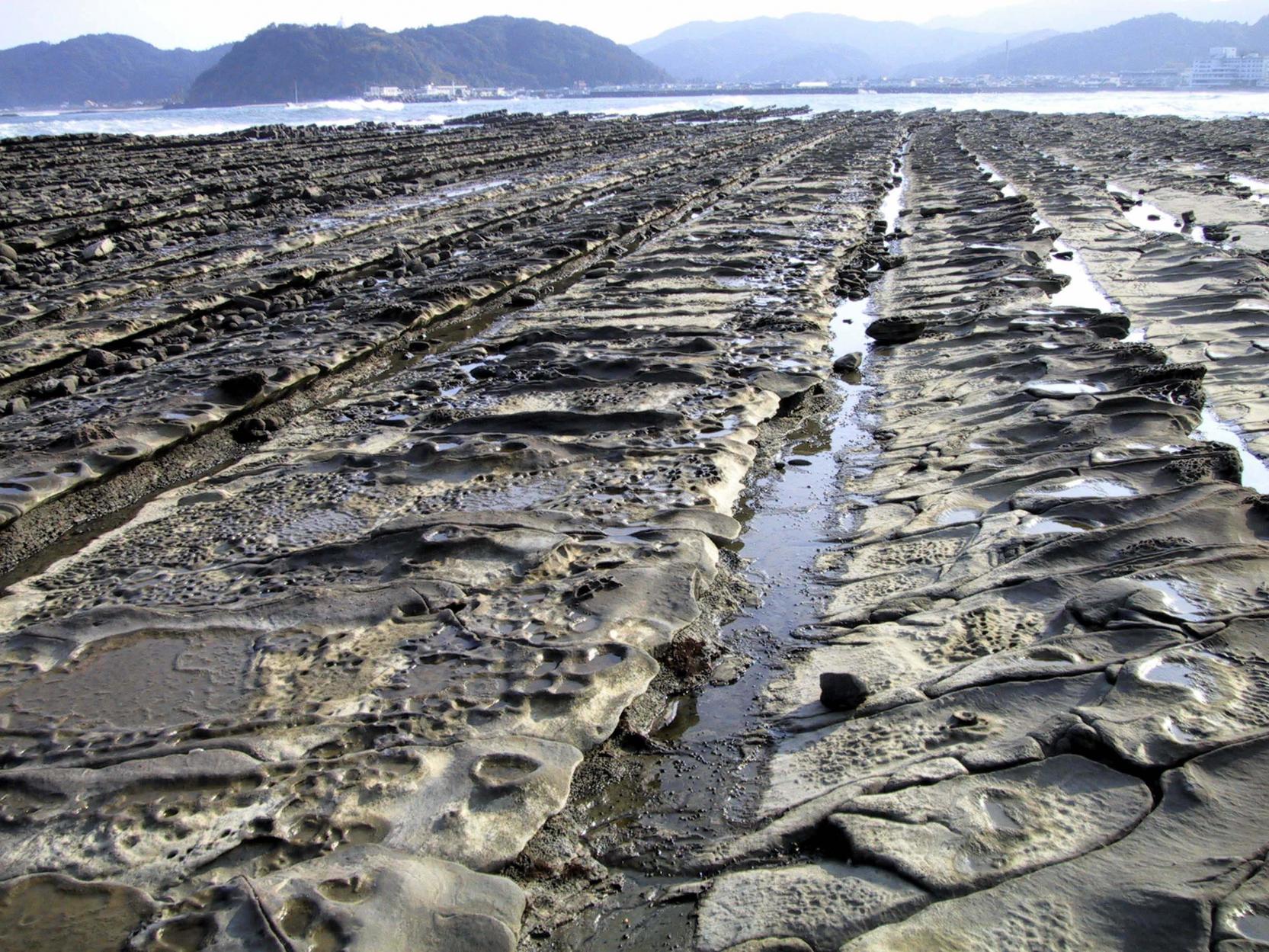 抵达青岛后首先映入眼帘的为一望无际的天空,以及波光粼粼的大海。青岛周围海浪平稳,海浪缓慢地拍打着岸边岩石,一阵一阵地穿梭于岩石细缝间。因为形状与从前日本人使用的洗衣板相似,因而得名「鬼之洗衣板」。坚固的砂岩与柔软的泥岩层层堆叠,柔软的泥岩历经长久岁月的冲蚀而形成现在的形状。推荐直接漫步于「鬼之洗衣板」上,亲手触摸看看岩石奇特的触感。
