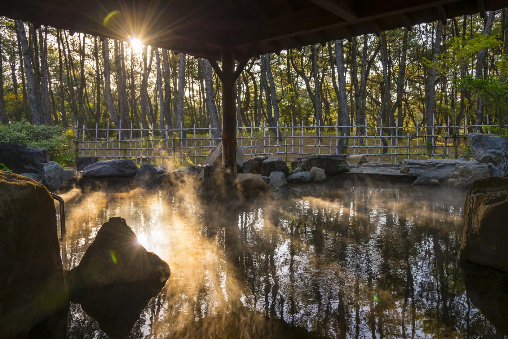 “松泉宮”緊鄰酒店,佇立於郁郁蔥蔥的黑松林之中。源泉涌自地下1,000米深處,是經過萬年前地層過濾后產生的天然溫泉,屬於中性塩化物泉。萃取地層中太古之海化石里所蘊藏的多種微量元素,素有“美人湯”之美譽。對消除疲勞、緩解體寒、關節疼痛等症狀有顯著的理療功效。
